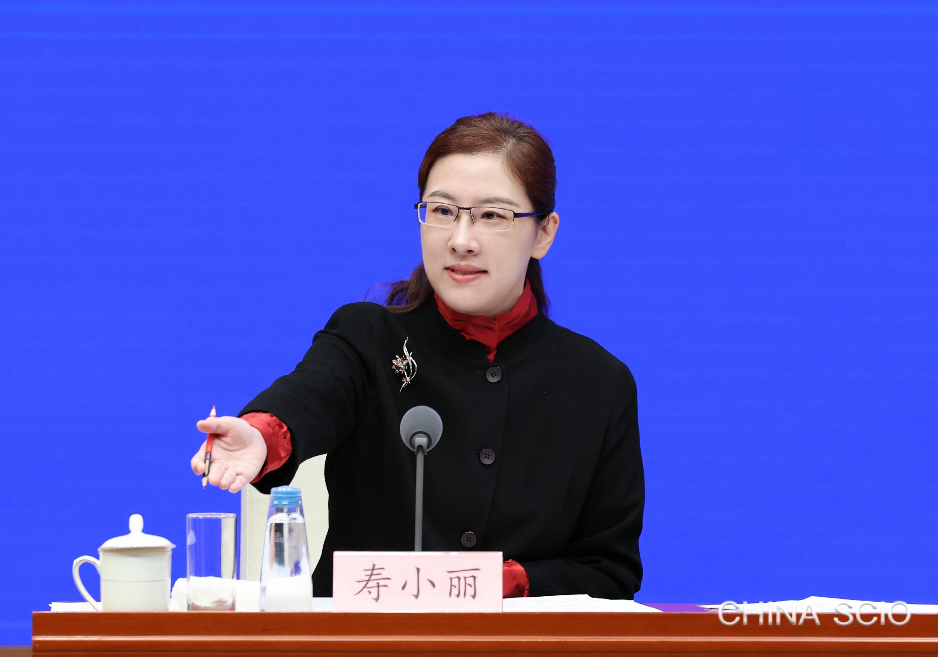 Shou Xiaoli, director general of the Press Bureau of the State Council Information Office (SCIO) and spokesperson of the SCIO, invites journalists to raise questions at a press conference in Beijing, Oct. 11, 2025. [Photo by Luan Haijun/China SCIO]