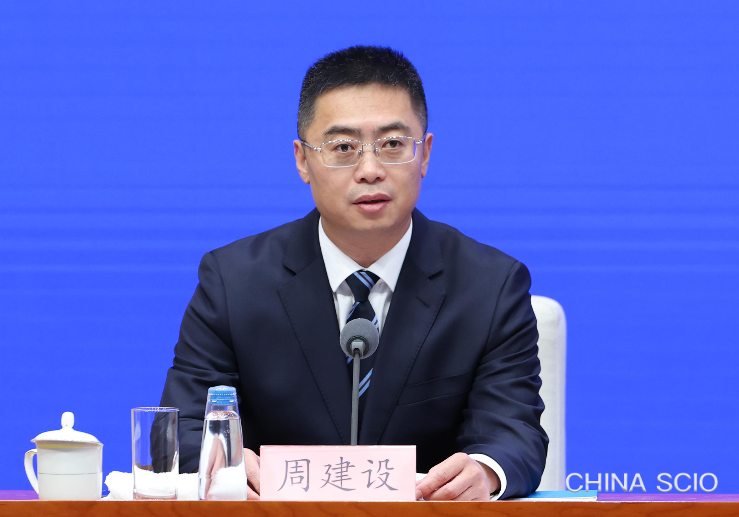 Zhou Jianshe, deputy director general of the Press Bureau of the State Council Information Office (SCIO) and spokesperson of the SCIO, chairs a policy briefing in Beijing, Oct. 31, 2025. [Photo by Luan Haijun/China SCIO]