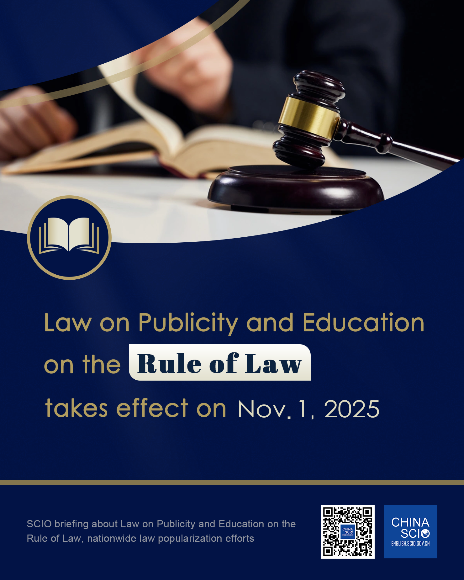China's Law on Publicity and Education on the Rule of Law takes effect on Nov. 1. The legislation marks a significant step in promoting legal literacy and strengthening public awareness of the rule of law nationwide.