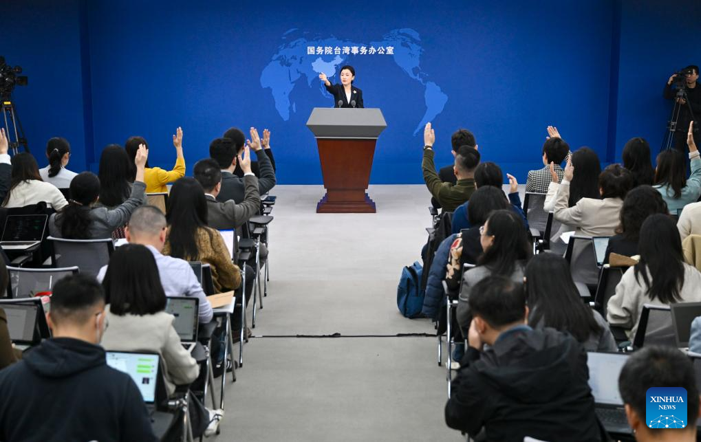 Zhang Han, a new spokesperson for the State Council Taiwan Affairs Office, gestures at a press conference in Beijing, capital of China, Nov. 5, 2025. (Xinhua/Chen Yehua)