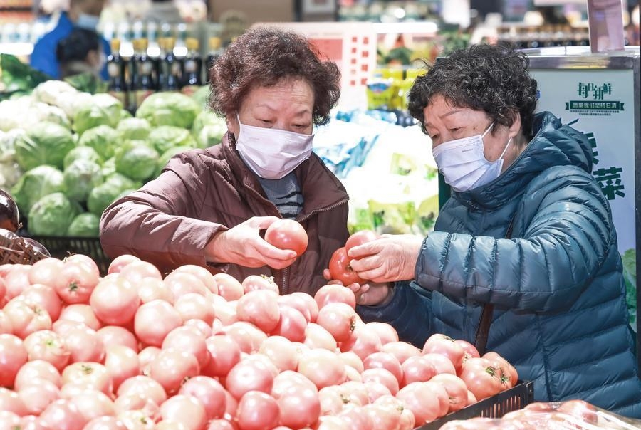 Customers select vegetables at a market in Wuhan, central China's Hubei Province, Dec. 10, 2025. China's consumer price index (CPI), a main gauge of inflation, grew at a faster pace in November, driven by rising food prices, official data showed Wednesday. (Photo by Zhao Jun/Xinhua)