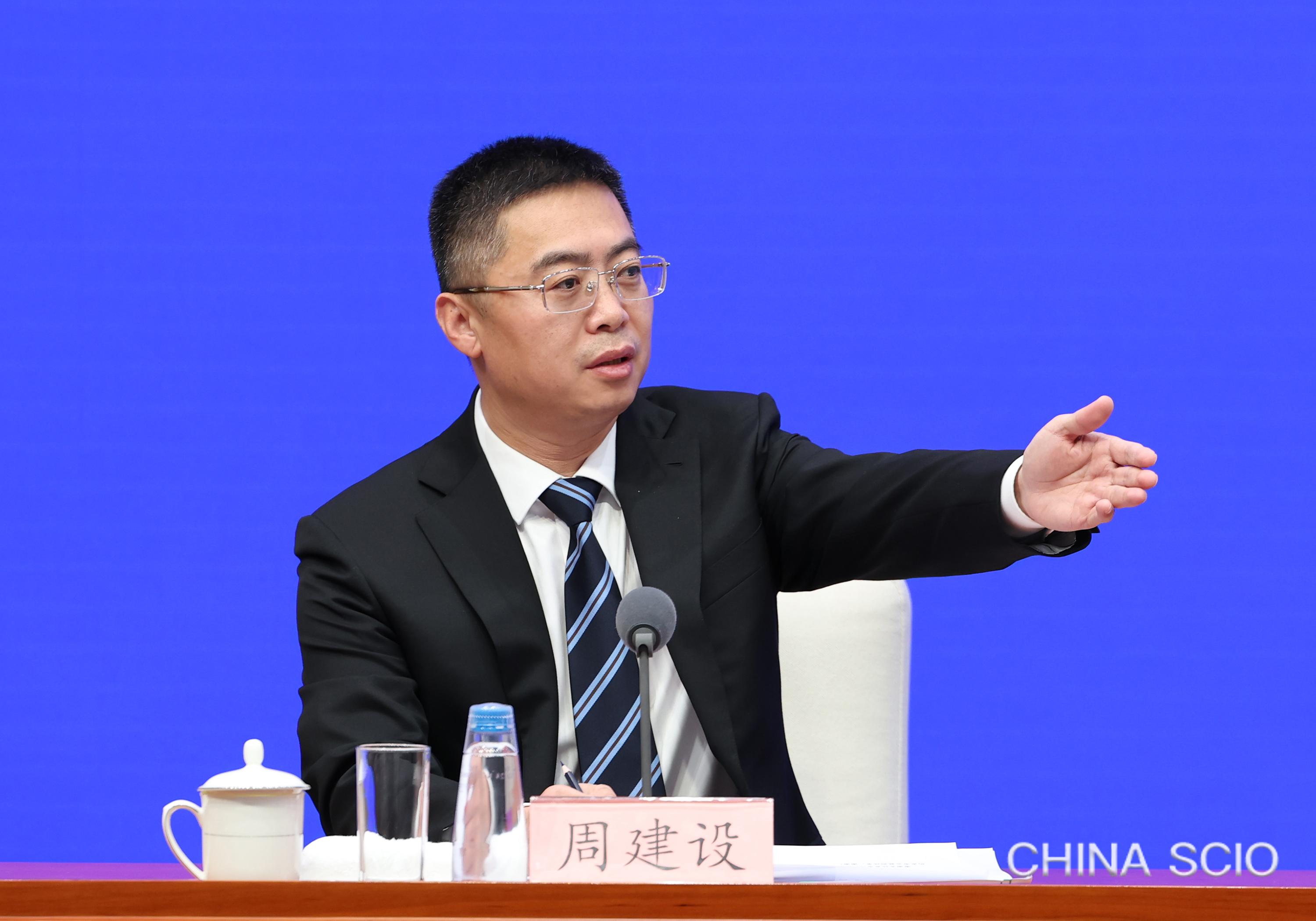 Zhou Jianshe, deputy director general of the Press Bureau of the State Council Information Office (SCIO) and spokesperson of the SCIO, invites journalists to raise questions at a press conference in Beijing, Jan. 6, 2026. [Photo by Luan Haijun/China SCIO]