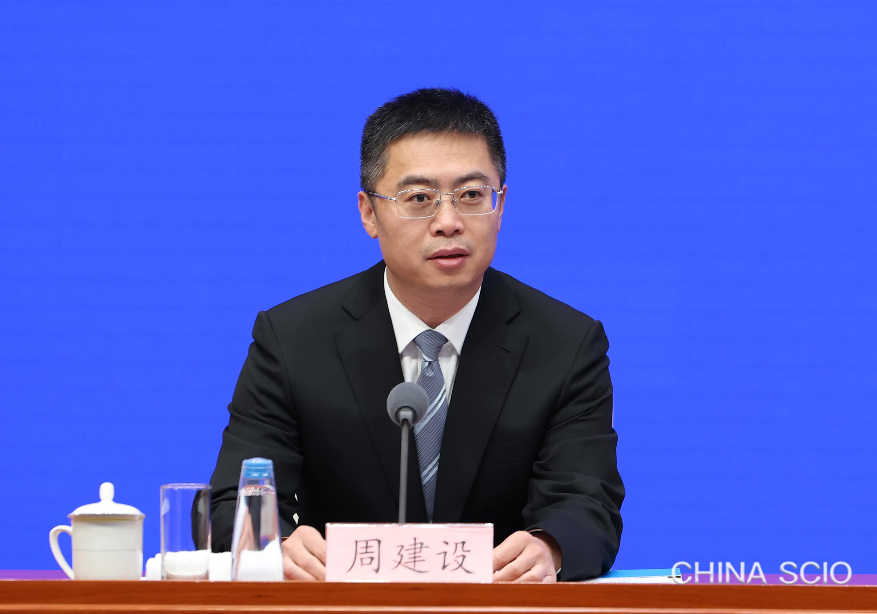 Zhou Jianshe, deputy director general of the Press Bureau of the State Council Information Office (SCIO) and spokesperson of the SCIO, chairs a press conference in Beijing, Jan. 15, 2026. [Photo by Luan Haijun/China SCIO]
