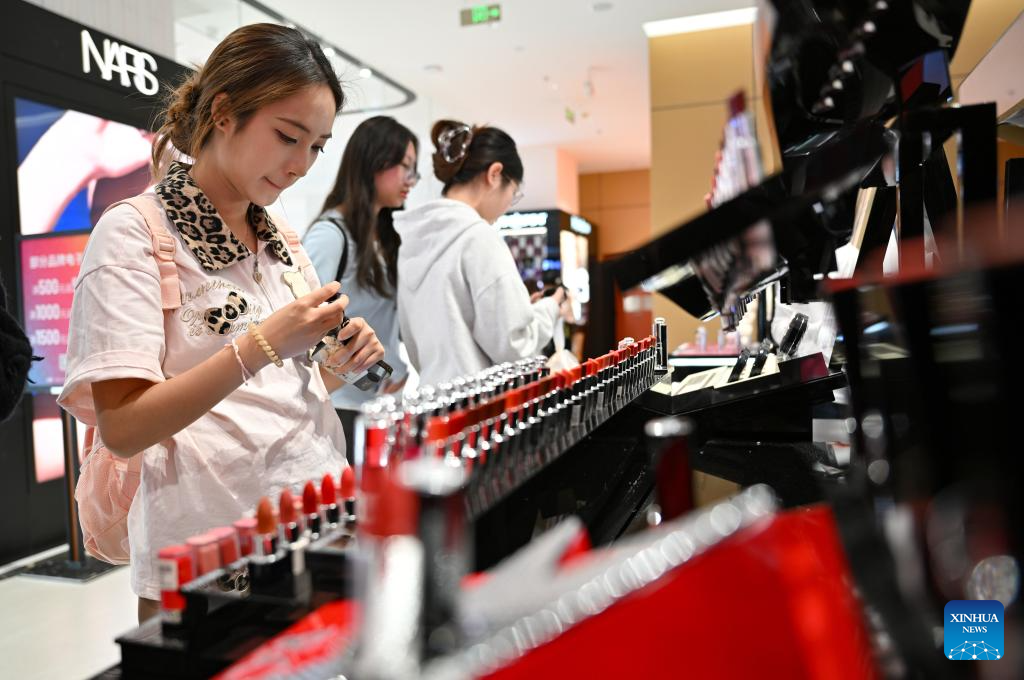 Costumers shop at a duty-free store in Haikou, south China's Hainan Province, on Jan. 17, 2026. On Dec. 18 last year, China launched island-wide special customs operations in the Hainan Free Trade Port (FTP), allowing freer entry of overseas goods, expanding zero-tariff coverage, and introducing more business-friendly measures. (Xinhua/Guo Cheng)