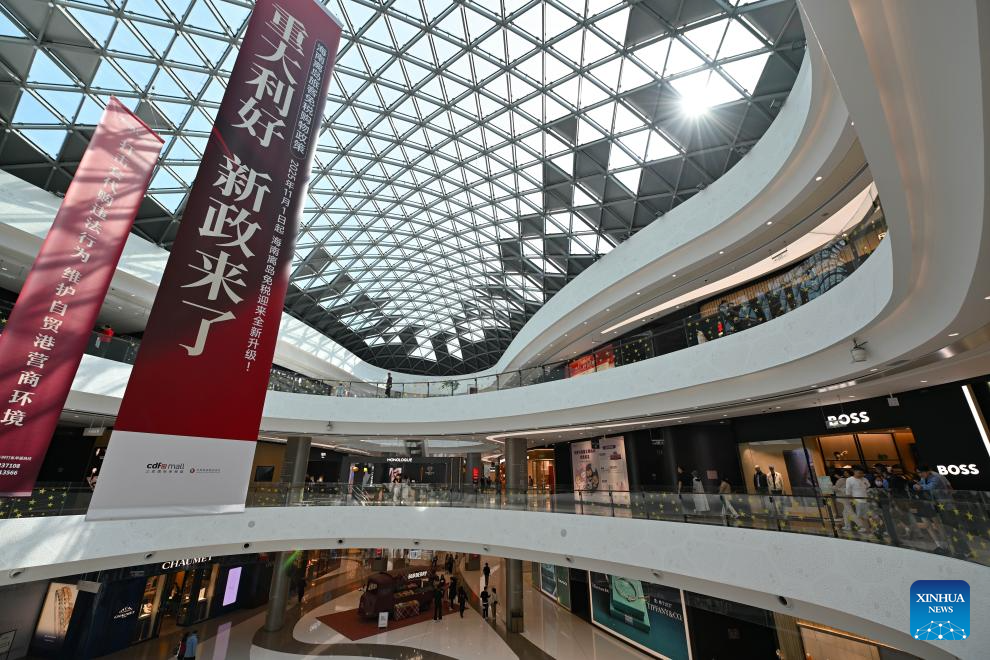 This photo taken on Jan. 10, 2026 shows an interior view of the Sanya International Duty Free City in Sanya, south China's Hainan Province. On Dec. 18 last year, China launched island-wide special customs operations in the Hainan Free Trade Port (FTP), allowing freer entry of overseas goods, expanding zero-tariff coverage, and introducing more business-friendly measures. (Xinhua/Guo Cheng)