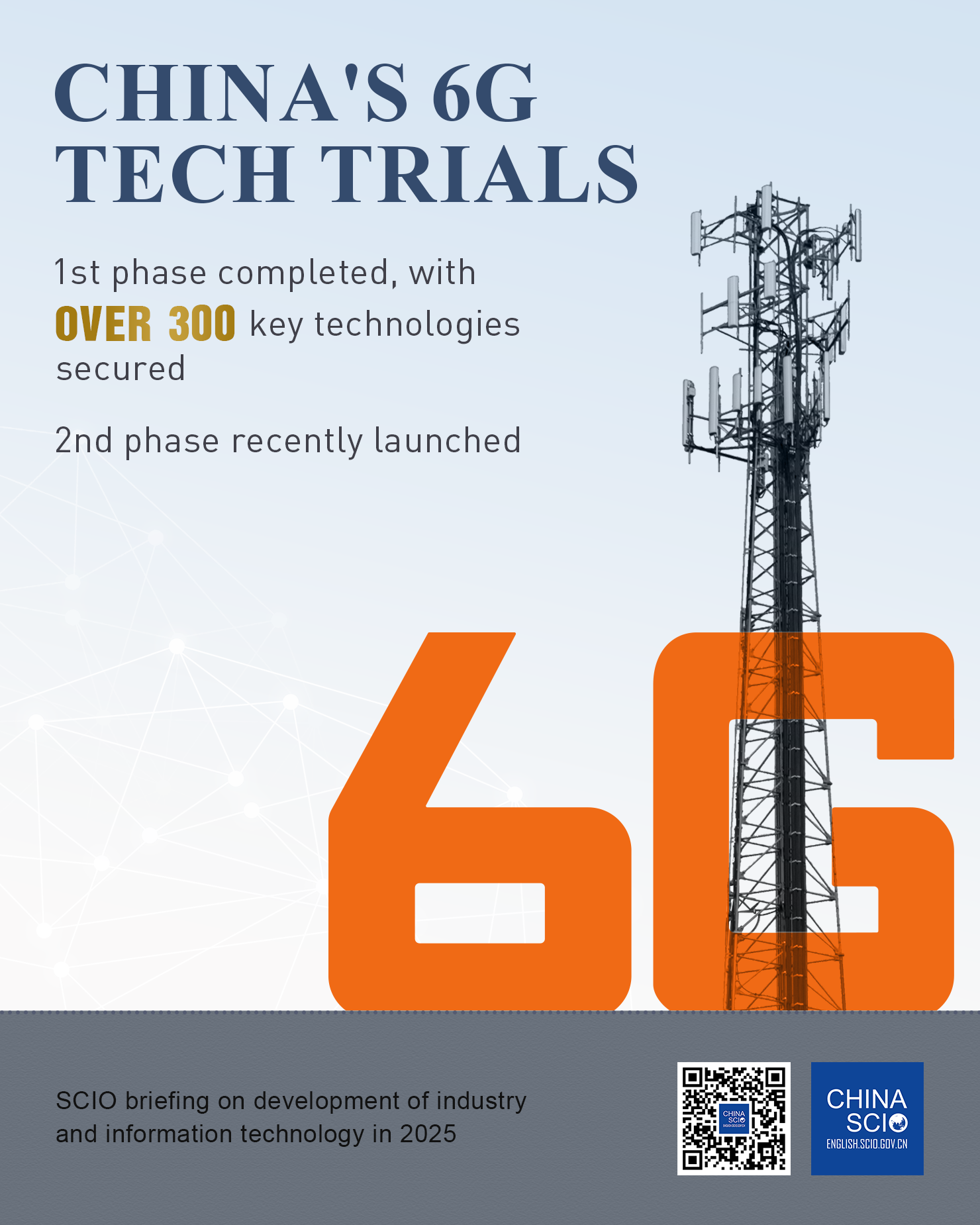 China's first-phase 6G technology trials have yielded a reserve of more than 300 key technologies, and the second phase has recently been launched, said Xie Cun, spokesperson of the Ministry of Industry and Information Technology, on Wednesday.