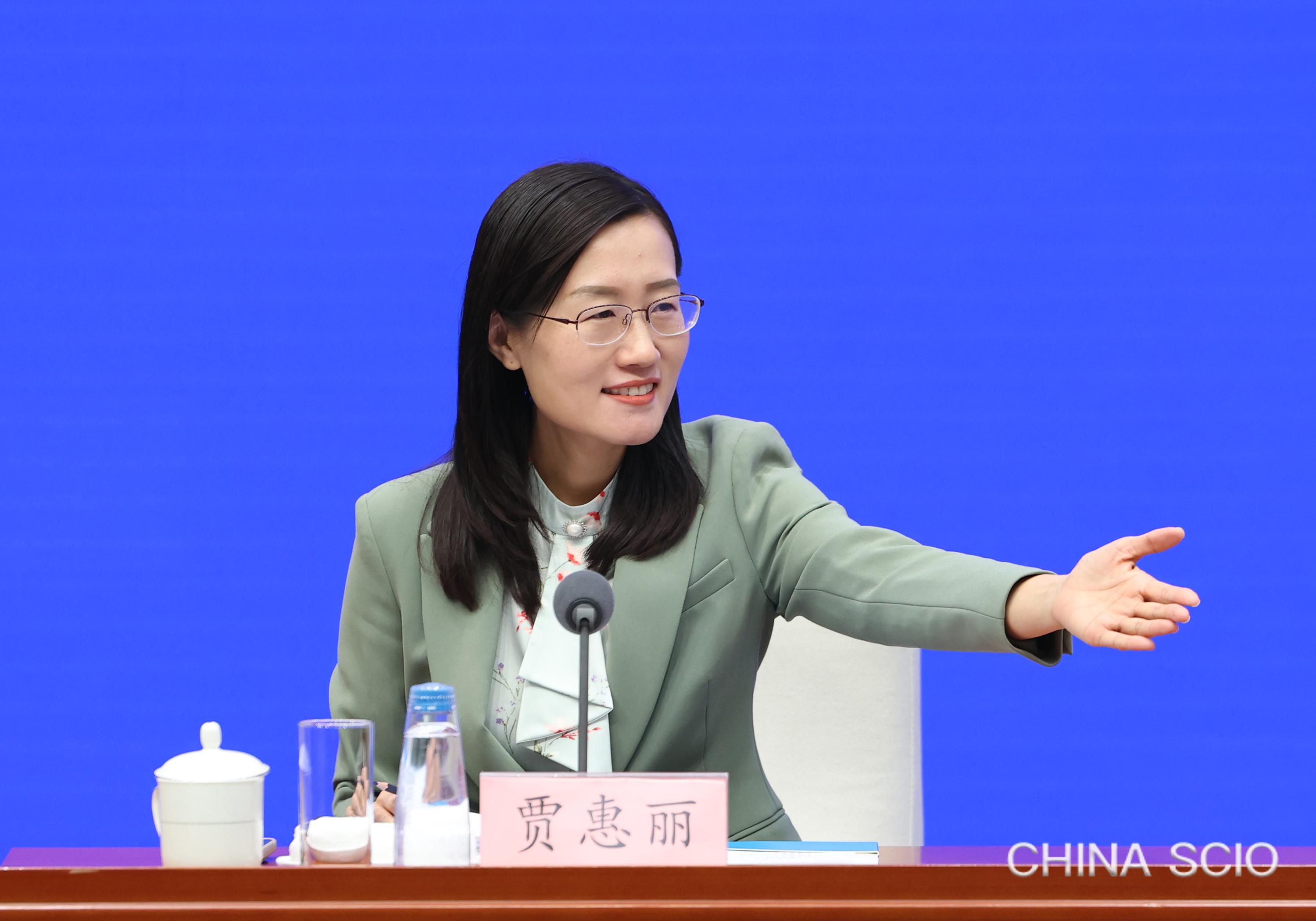 Jia Huili, deputy director general of the Press Bureau of the State Council Information Office (SCIO) and spokesperson of the SCIO, invites journalists to raise questions at a press conference in Beijing, Feb. 5, 2026. [Photo by Luan Haijun/China SCIO]