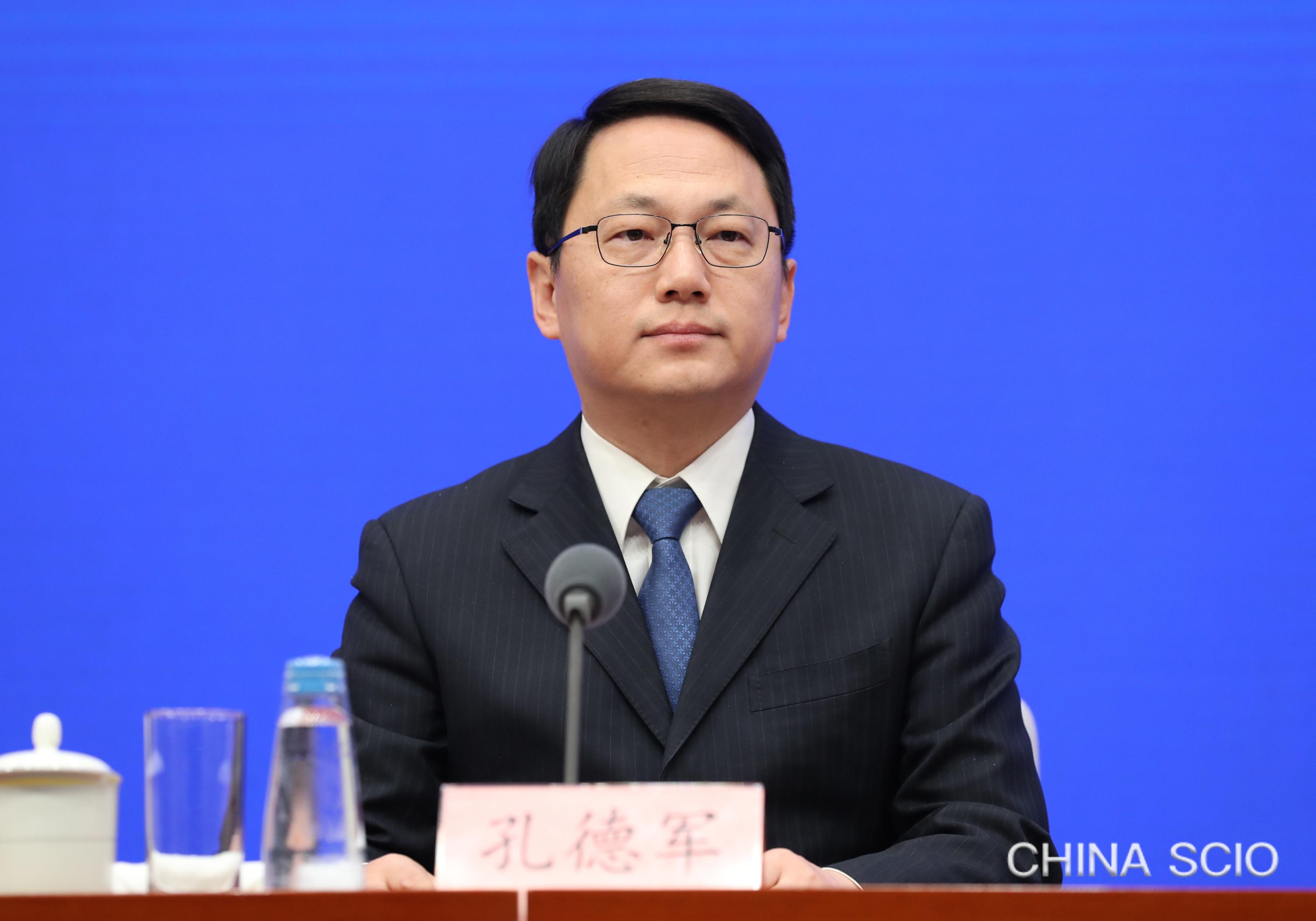 Kong Dejun, director general of the Department of Trade in Services and Commercial Services of the Ministry of Commerce, attends a policy briefing in Beijing, Feb. 6, 2026. [Photo by Xu Xiang/China SCIO]
