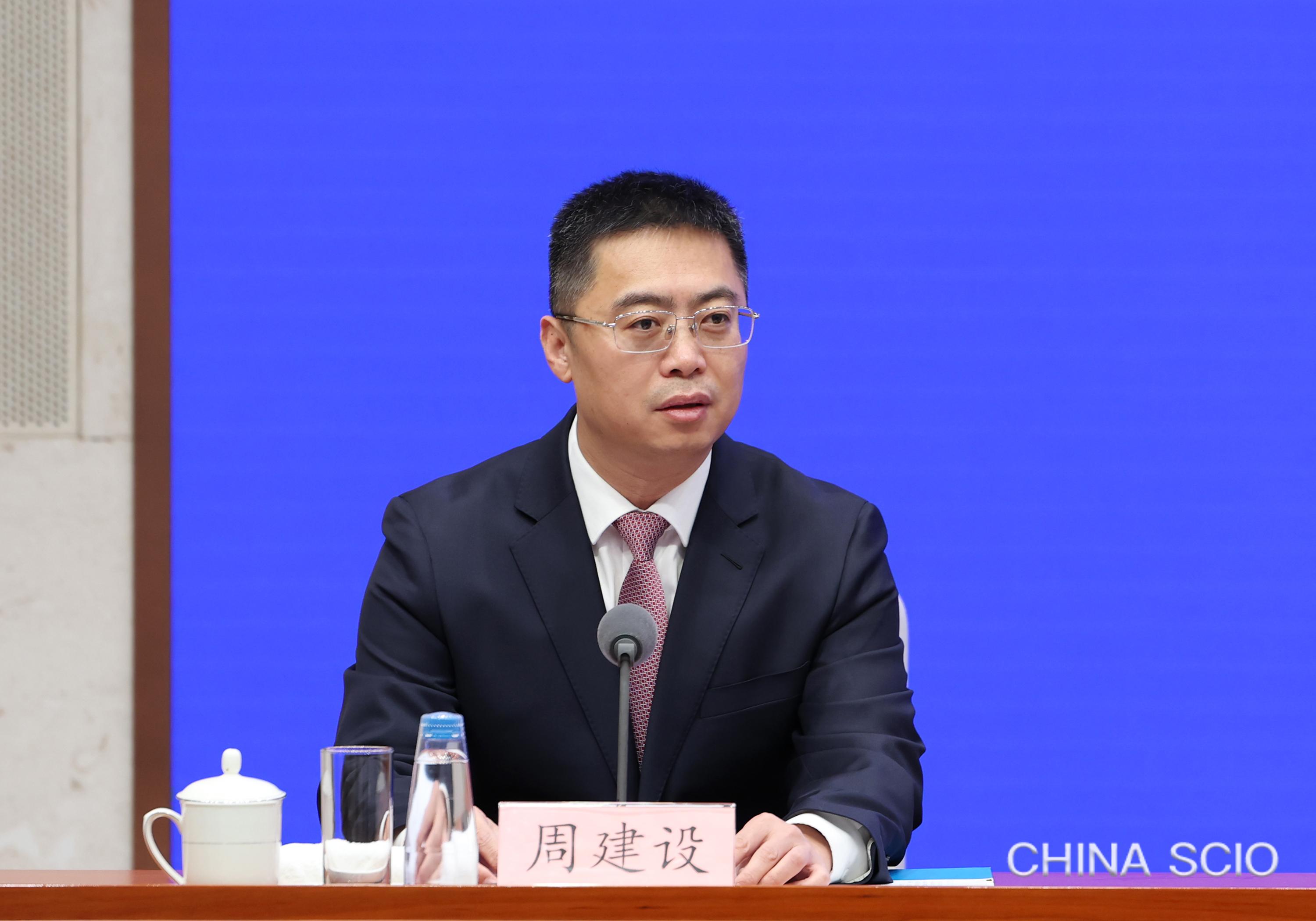 Zhou Jianshe, deputy director general of the Press Bureau of the State Council Information Office (SCIO) and spokesperson of the SCIO, chairs a press conference in Beijing, Feb. 11, 2026. [Photo by Luan Haijun/China SCIO]
