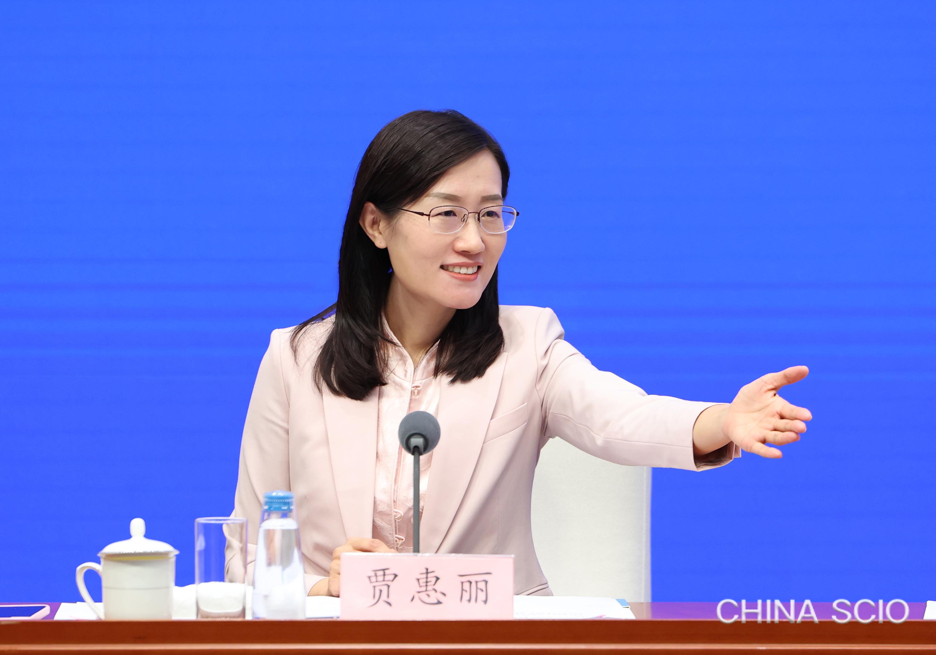 Jia Huili, deputy director general of the Press Bureau of the State Council Information Office (SCIO) and spokesperson of the SCIO, invites journalists to raise questions at a press conference in Beijing, Feb. 12, 2026. [Photo by Luan Haijun/China SCIO]