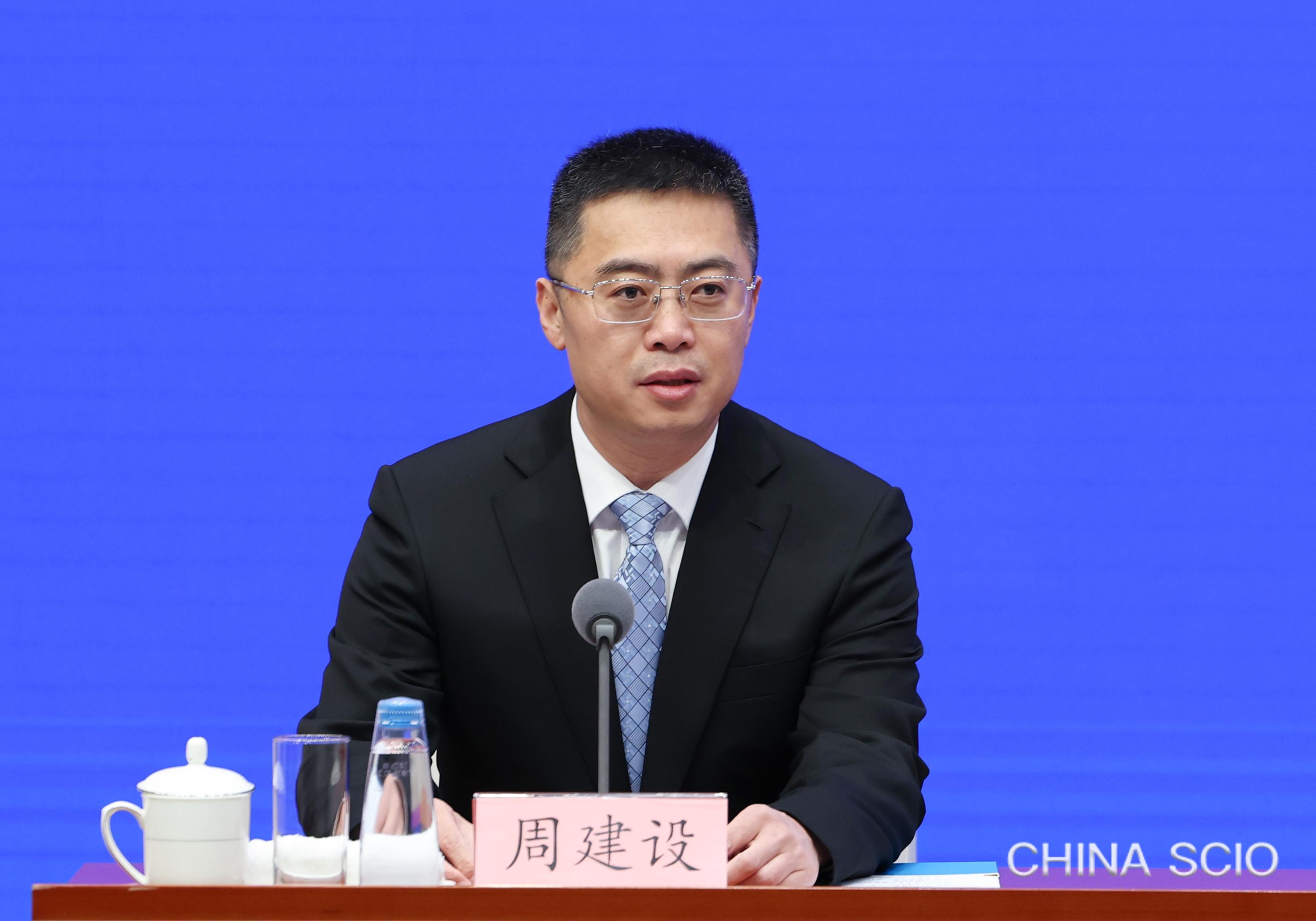 Zhou Jianshe, deputy director general of the Press Bureau of the State Council Information Office (SCIO) and spokesperson of the SCIO, chairs a press briefing in Beijing, March 7, 2026. [Photo by Luan Haijun/China SCIO]