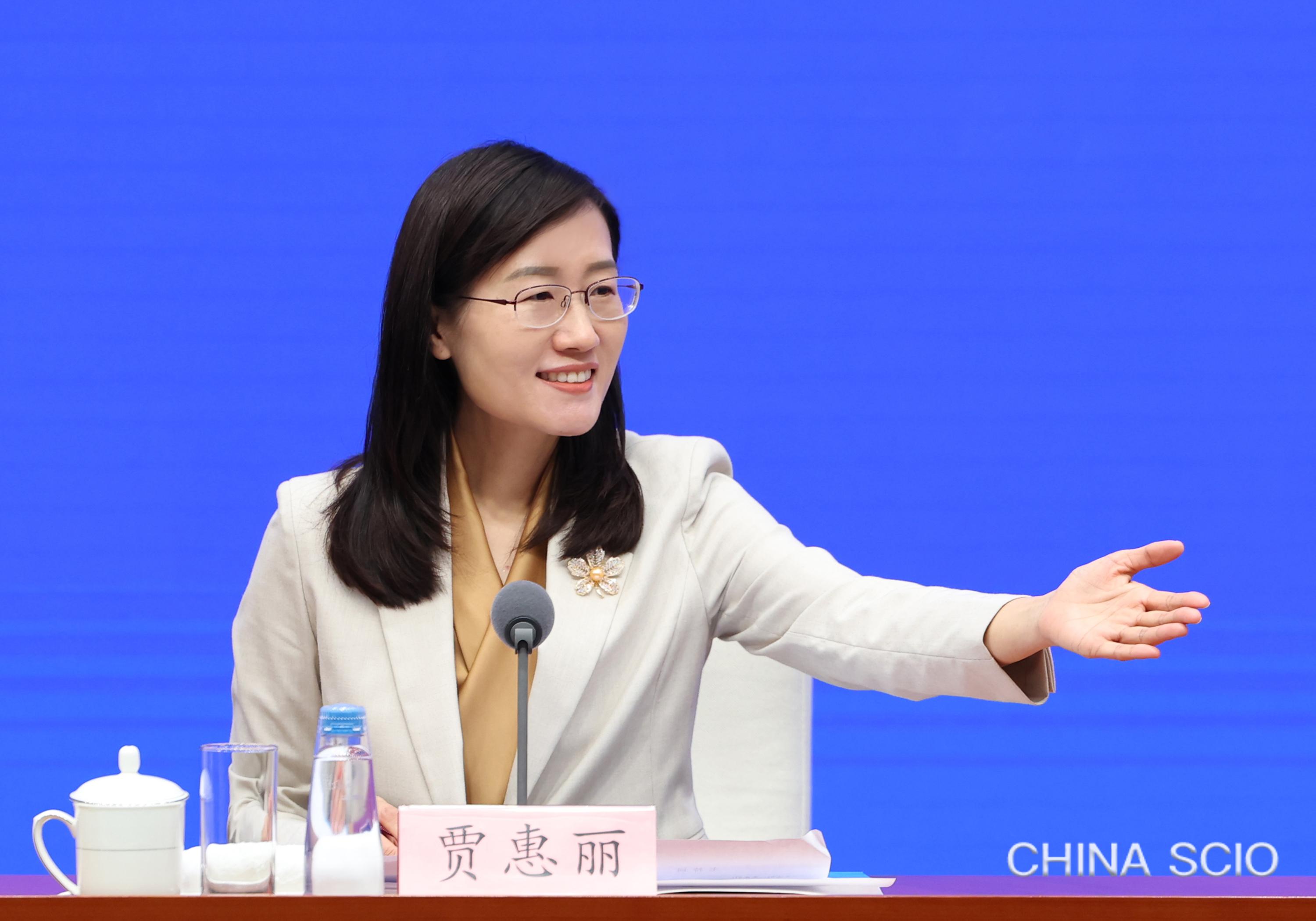 Jia Huili, deputy director general of the Press Bureau of the State Council Information Office (SCIO) and spokesperson of the SCIO, invites journalists to raise questions at a press conference in Beijing, March 16, 2026. [Photo by Luan Haijun/China SCIO]