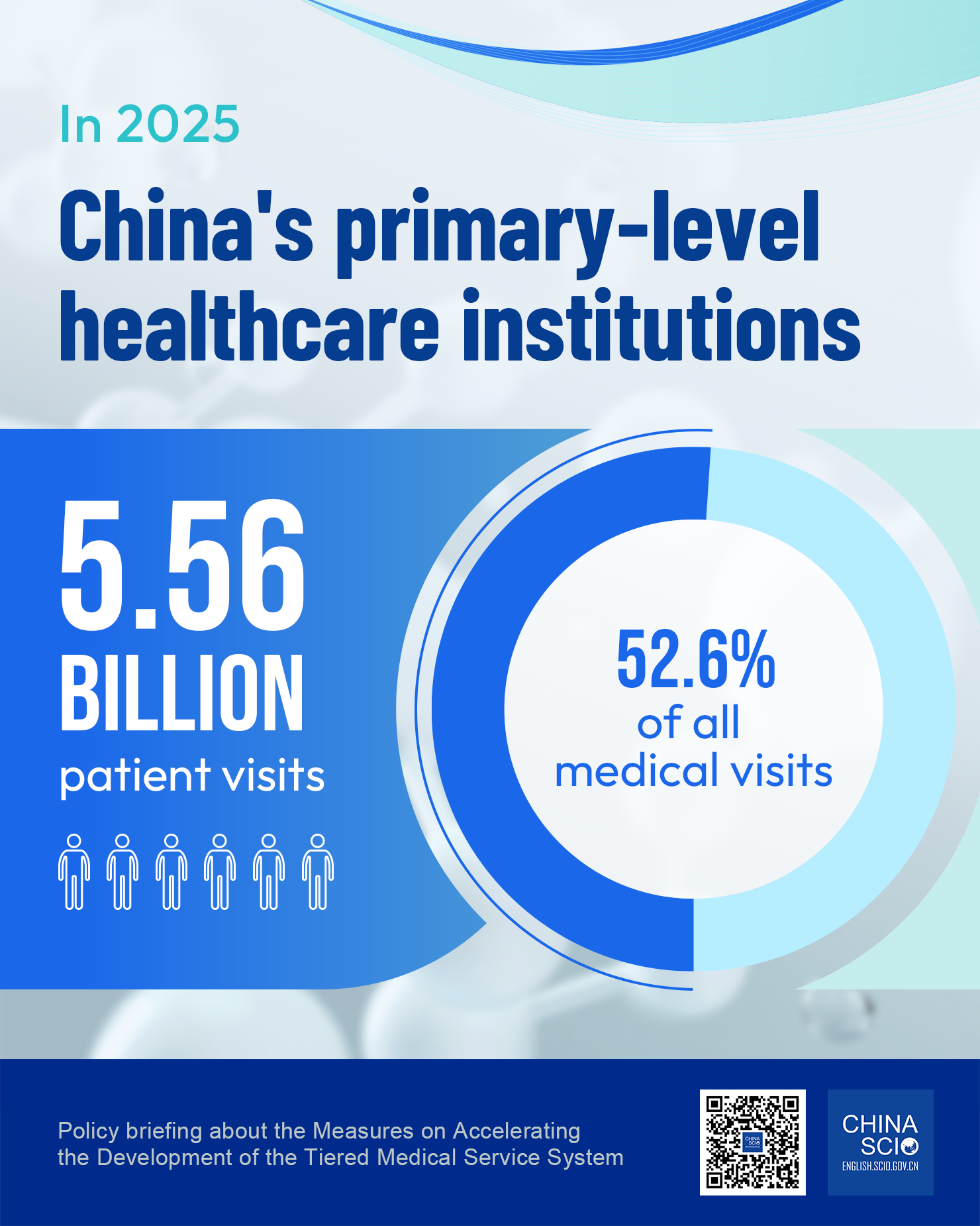 In 2025, China's primary-level healthcare institutions handled 5.56 billion patient visits, accounting for 52.6% of all medical visits to the country's medical facilities. The continued rise in both volume and share indicates that the tiered medical service system is becoming increasingly effective, said Zheng Zhe, vice minister of the National Health Commission, at a policy briefing on Monday.