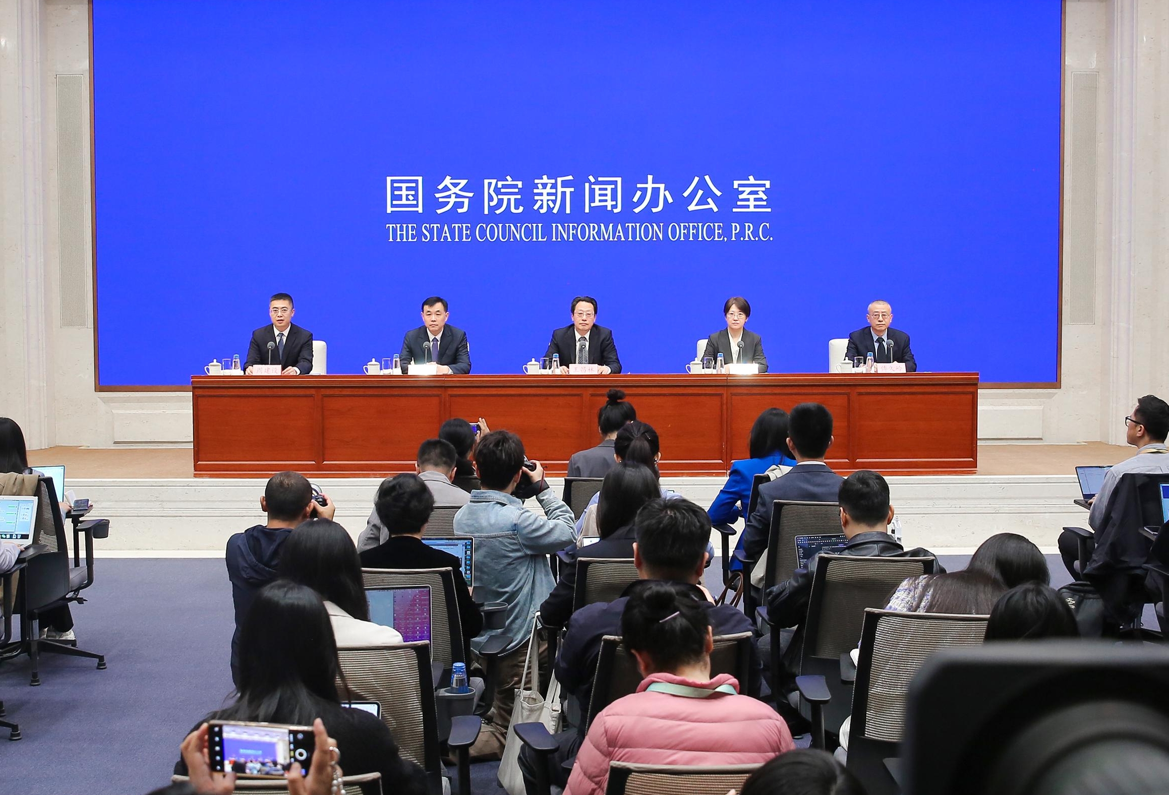 Zhou Jianshe, deputy director general of the Press Bureau of the State Council Information Office (SCIO) and spokesperson of the SCIO, chairs a press conference in Beijing, April 17, 2026. [Photo by Liu Jian/China SCIO]