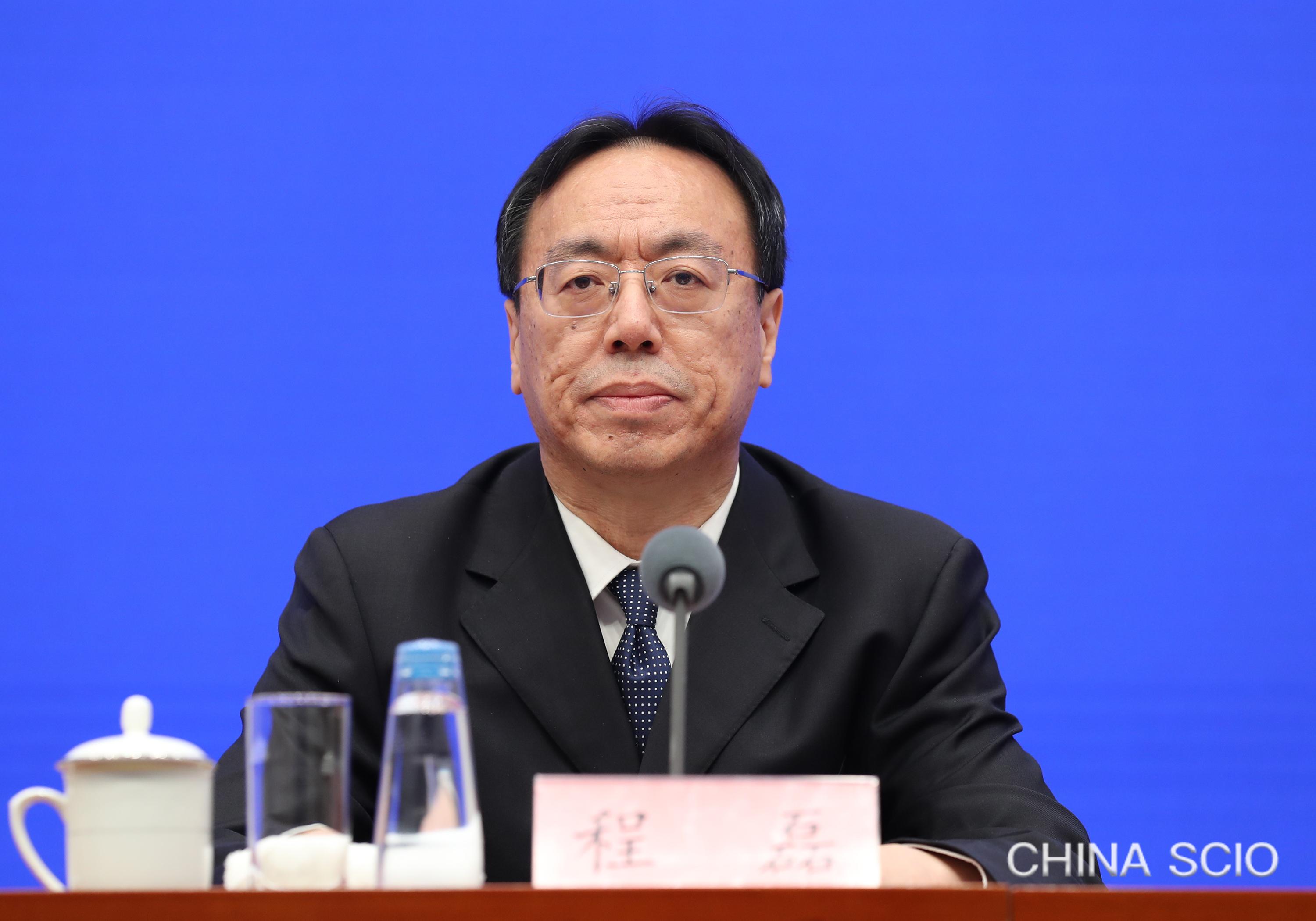 Cheng Lei, director general of the Department of Planning and Finance of the China Meteorological Administration, attends a press conference in Beijing, April 28, 2026. [Photo by Xu Xiang/China SCIO]