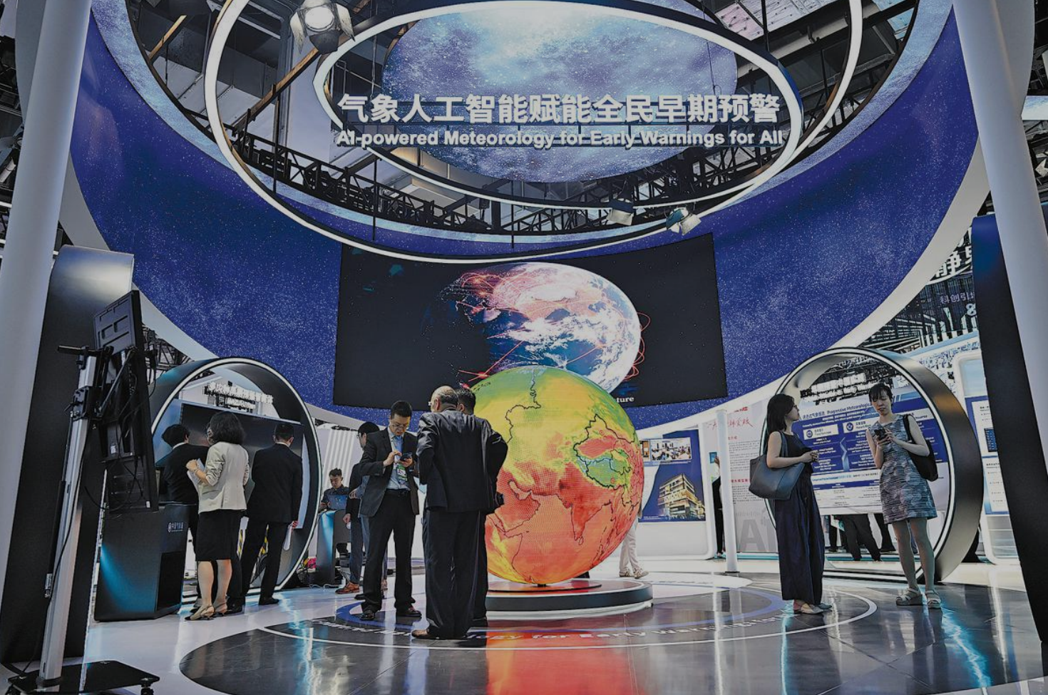 The MAZU system is on display at the China Meteorological Administration's booth during the World Artificial Intelligence Conference in Shanghai, July 26, 2025. [Photo/Xinhua]