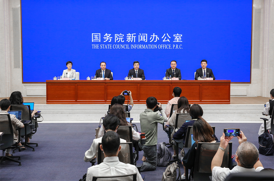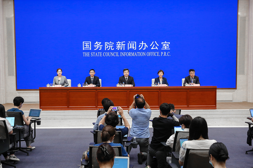 The State Council Information Office held a press conference on July 5 in Beijing to brief the media on the work by the Ministry of Industry and Information Technology to promote high-quality development.