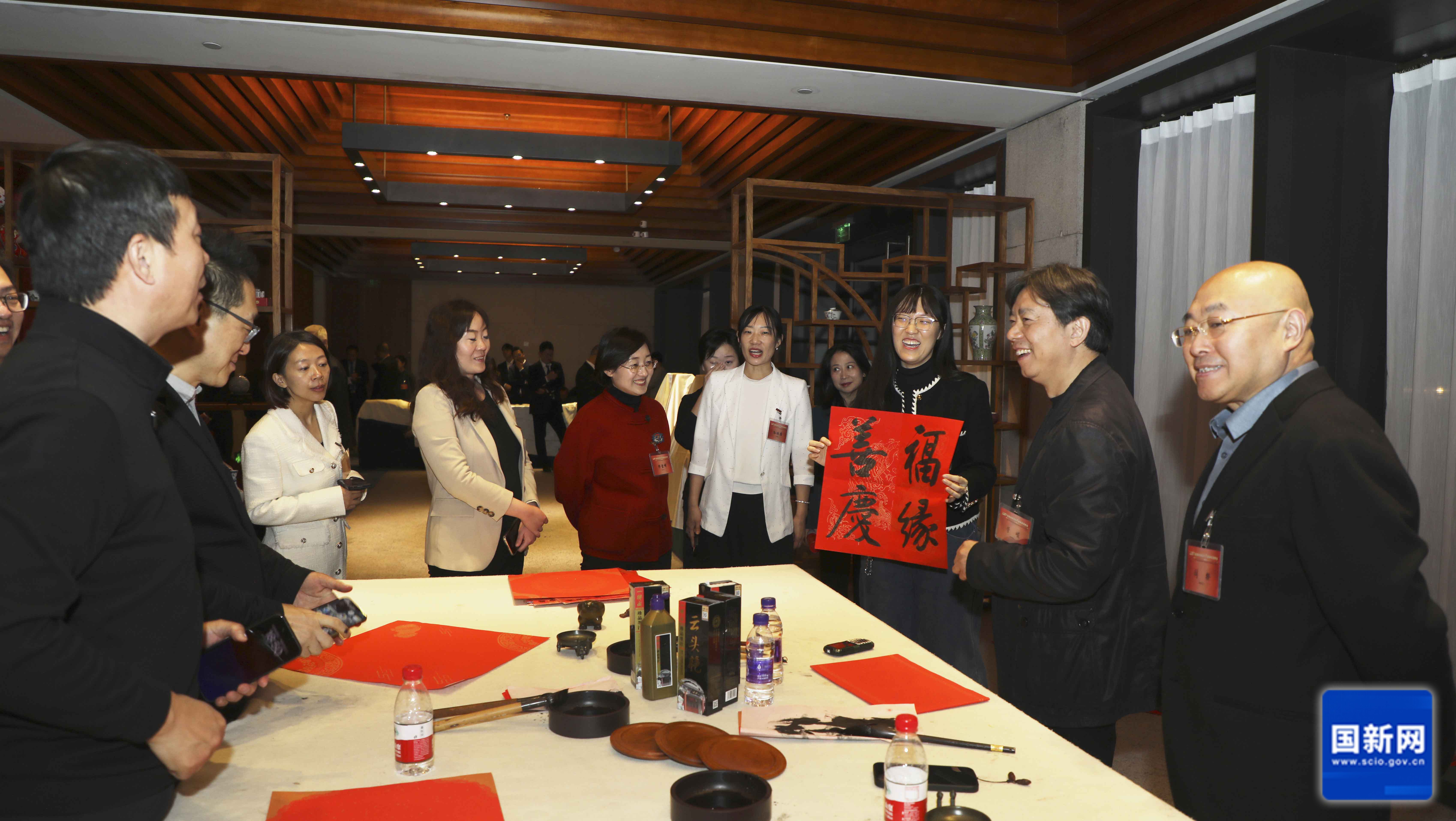 Guests experience Chinese calligraphy at a New Year reception held by the State Council Information Office at the National Museum of China in Beijing, capital of China, Dec. 18, 2024. [Photo/China SCIO]