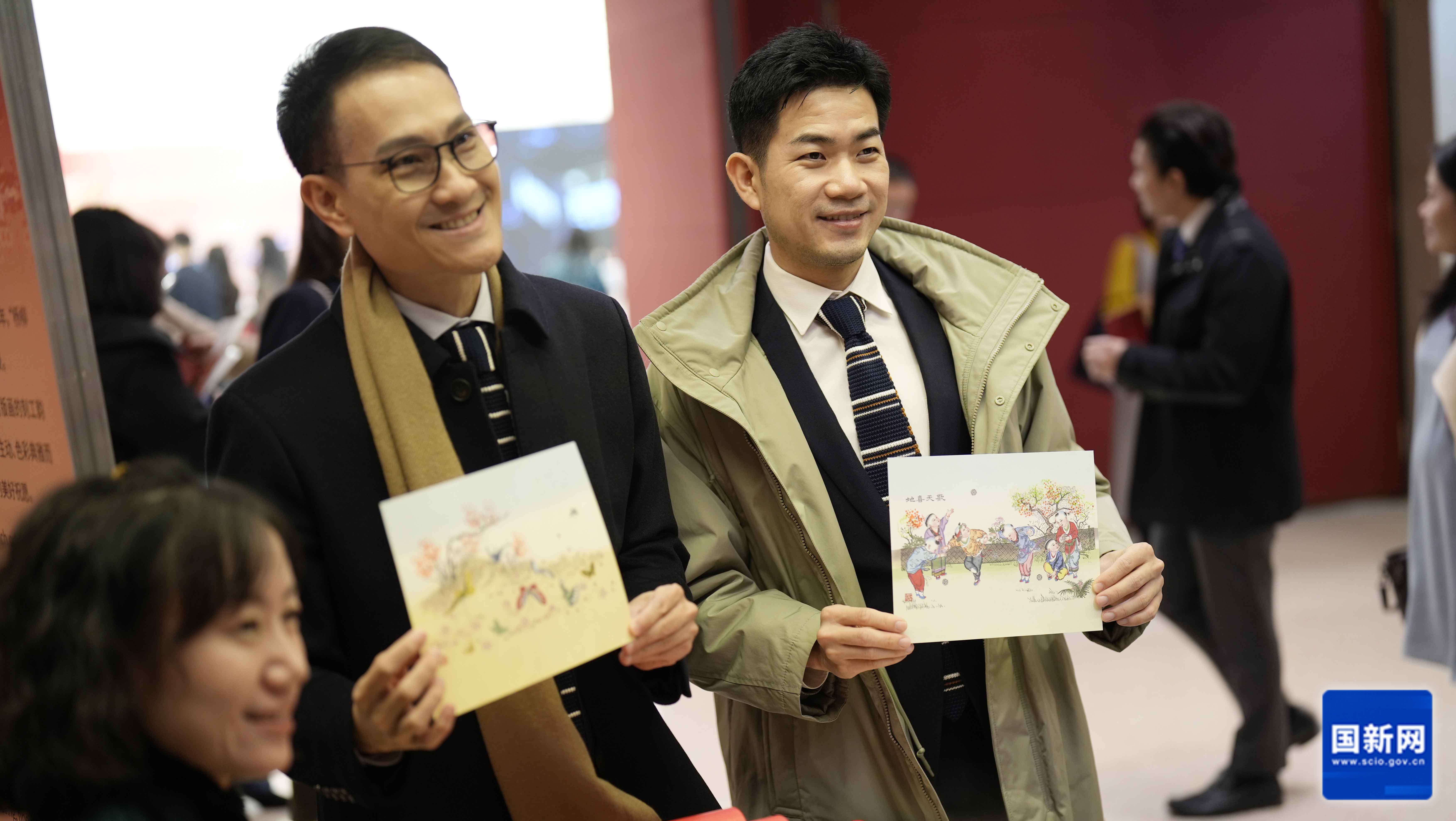 Guests experience China's intangible cultural heritage at a New Year reception held by the State Council Information Office at the National Museum of China in Beijing, capital of China, Dec. 18, 2024. [Photo/China SCIO]