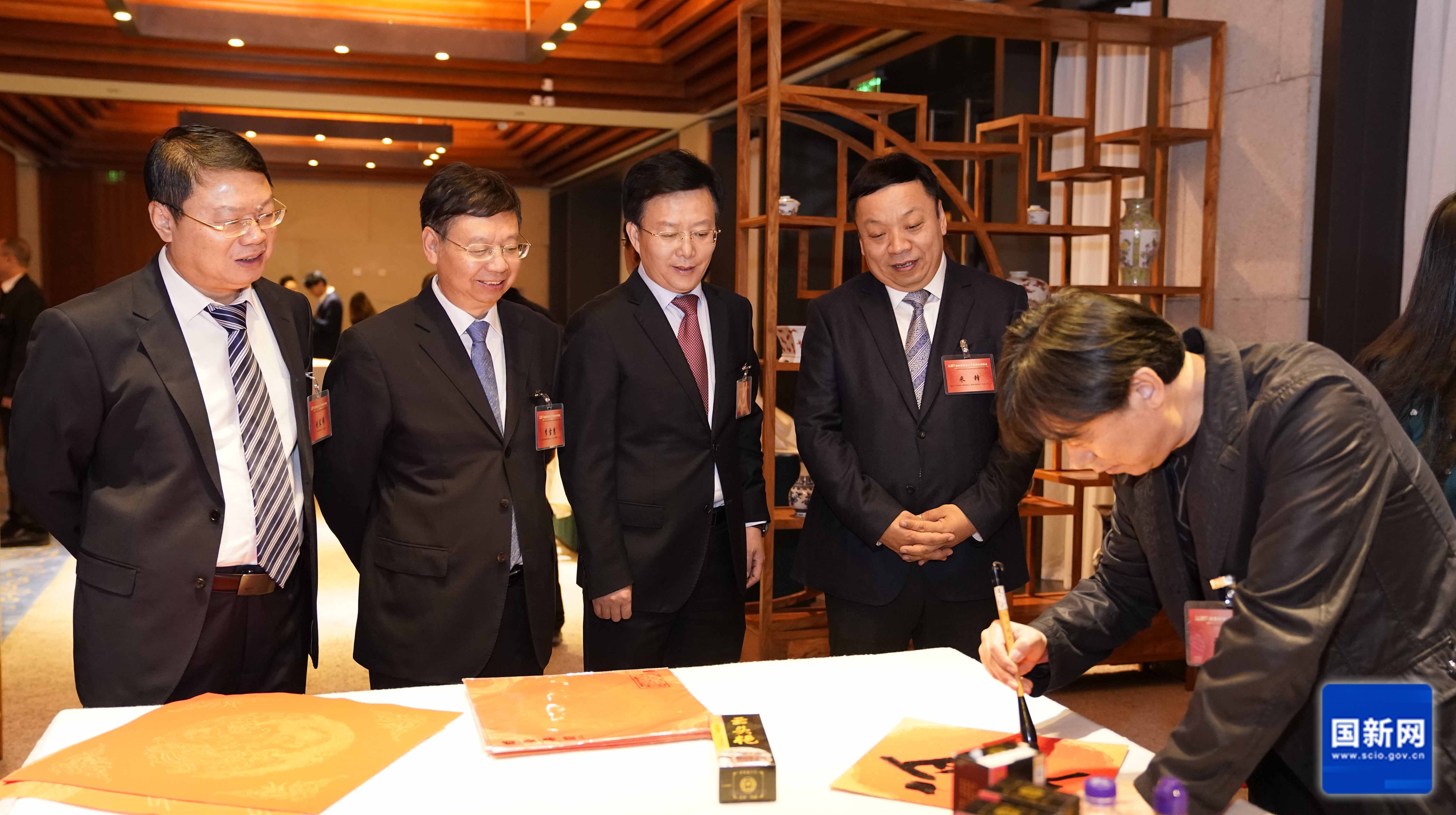 Guests experience Chinese calligraphy at a New Year reception held by the State Council Information Office at the National Museum of China in Beijing, capital of China, Dec. 18, 2024. [Photo/China SCIO]