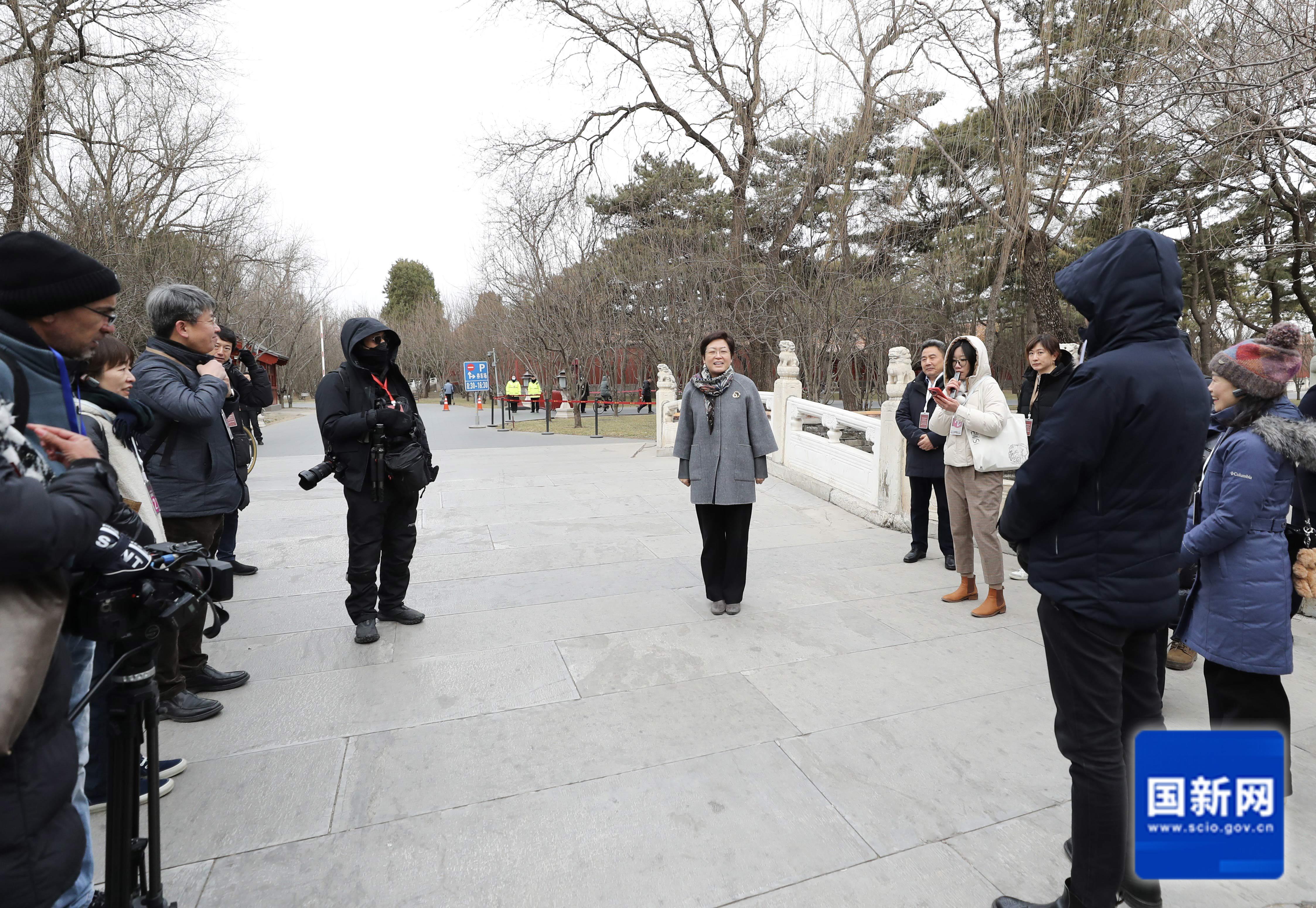 Xing Huina, deputy director general of the Press Bureau of the State Council Information Office (SCIO) and spokesperson of the SCIO, welcomes journalists in Beijing, Feb. 21, 2025. [Photo by Xu Xiang/China SCIO]