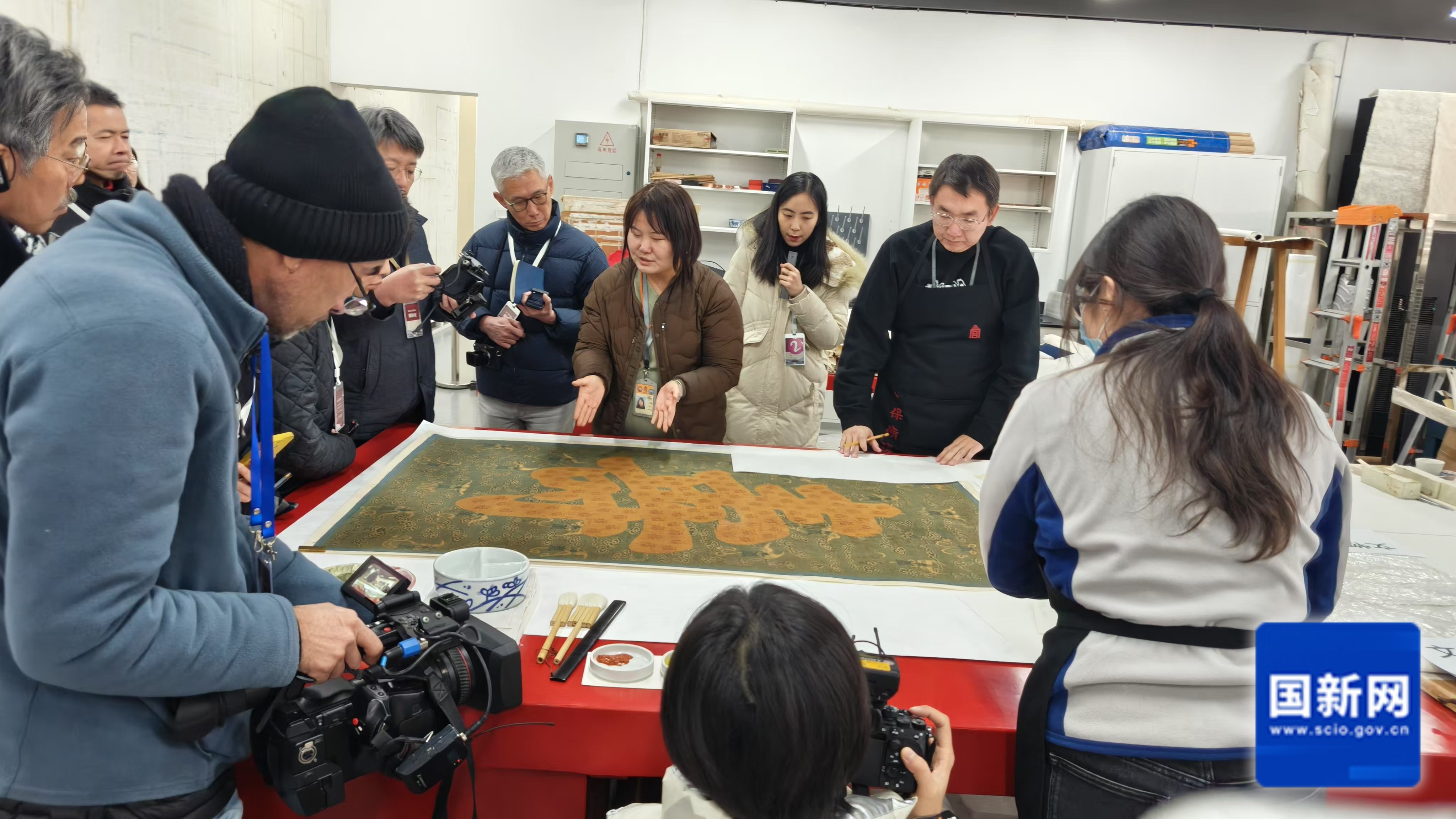 Journalists visit the restoration room for paintings and calligraphy at the Heritage Conservation and Restoration Department of the Palace Museum in Beijing, Feb. 21, 2025. [Photo by Xu Xiang/China SCIO]
