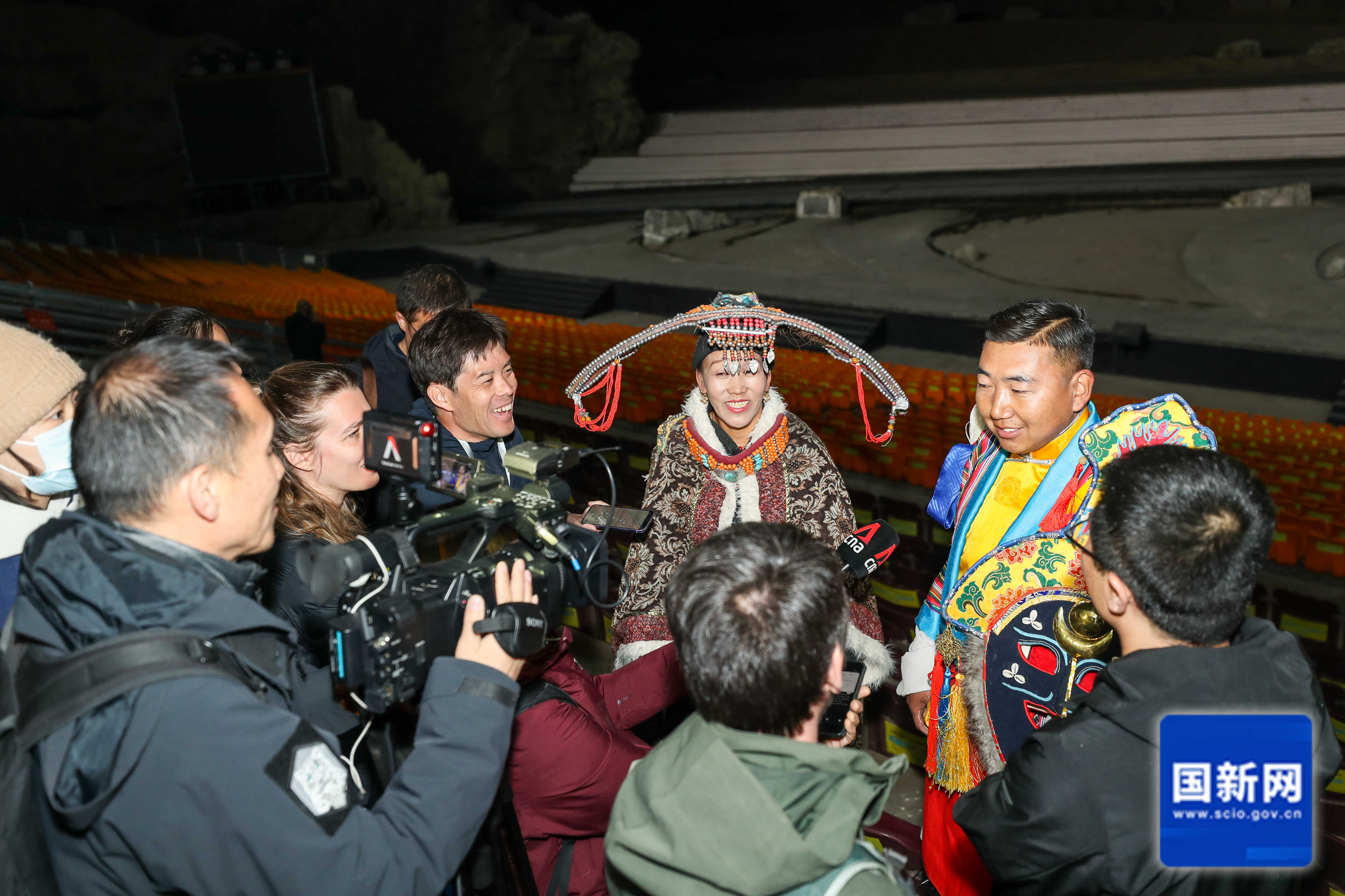 Performers from the epic drama "Princess Wencheng" speak with journalists in Xizang, March 29, 2025. [Photo by Xu Xiang/China SCIO]