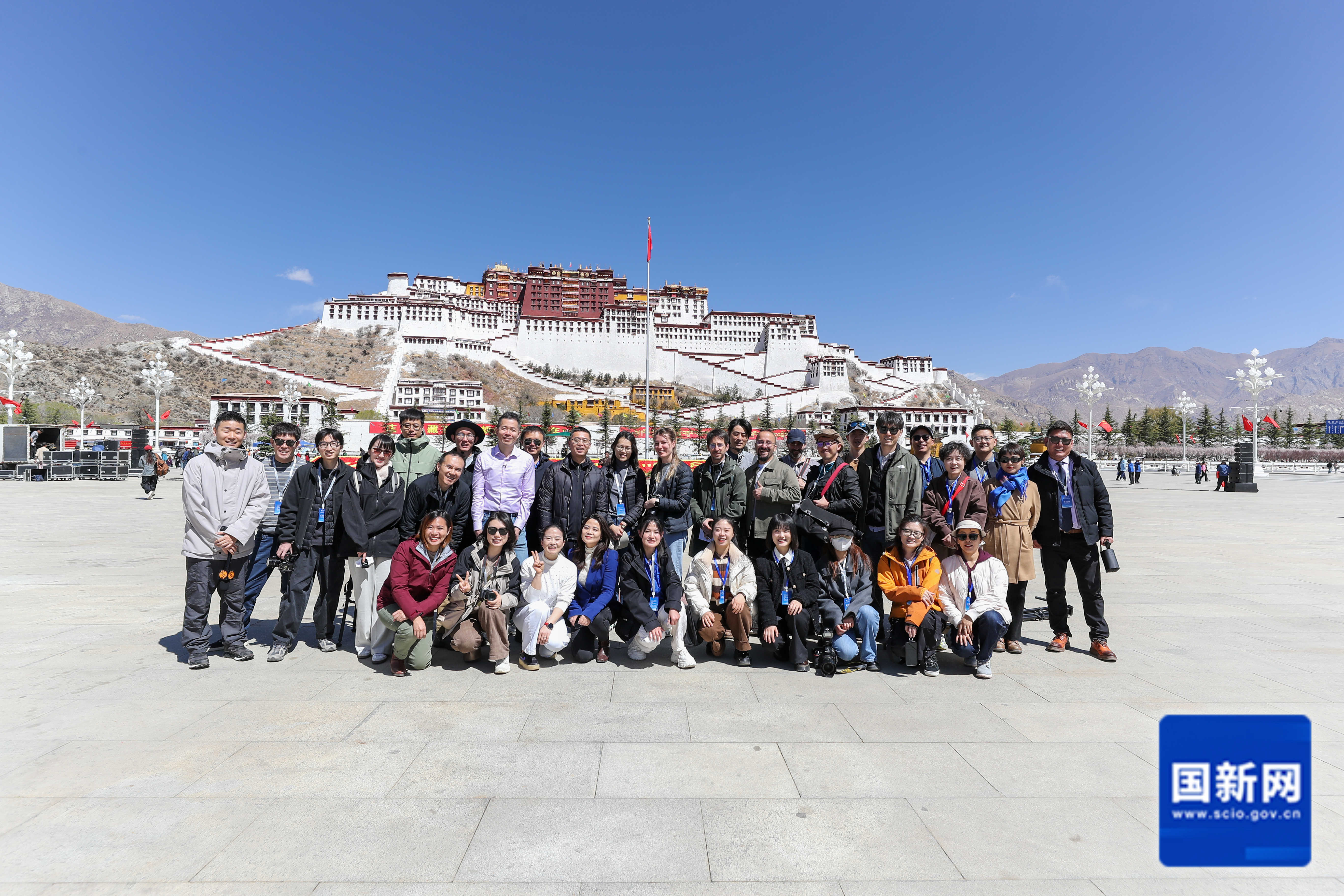 The media trip attendees pose for a group photo in Xizang, March 28, 2025. [Photo by Xu Xiang/China SCIO]