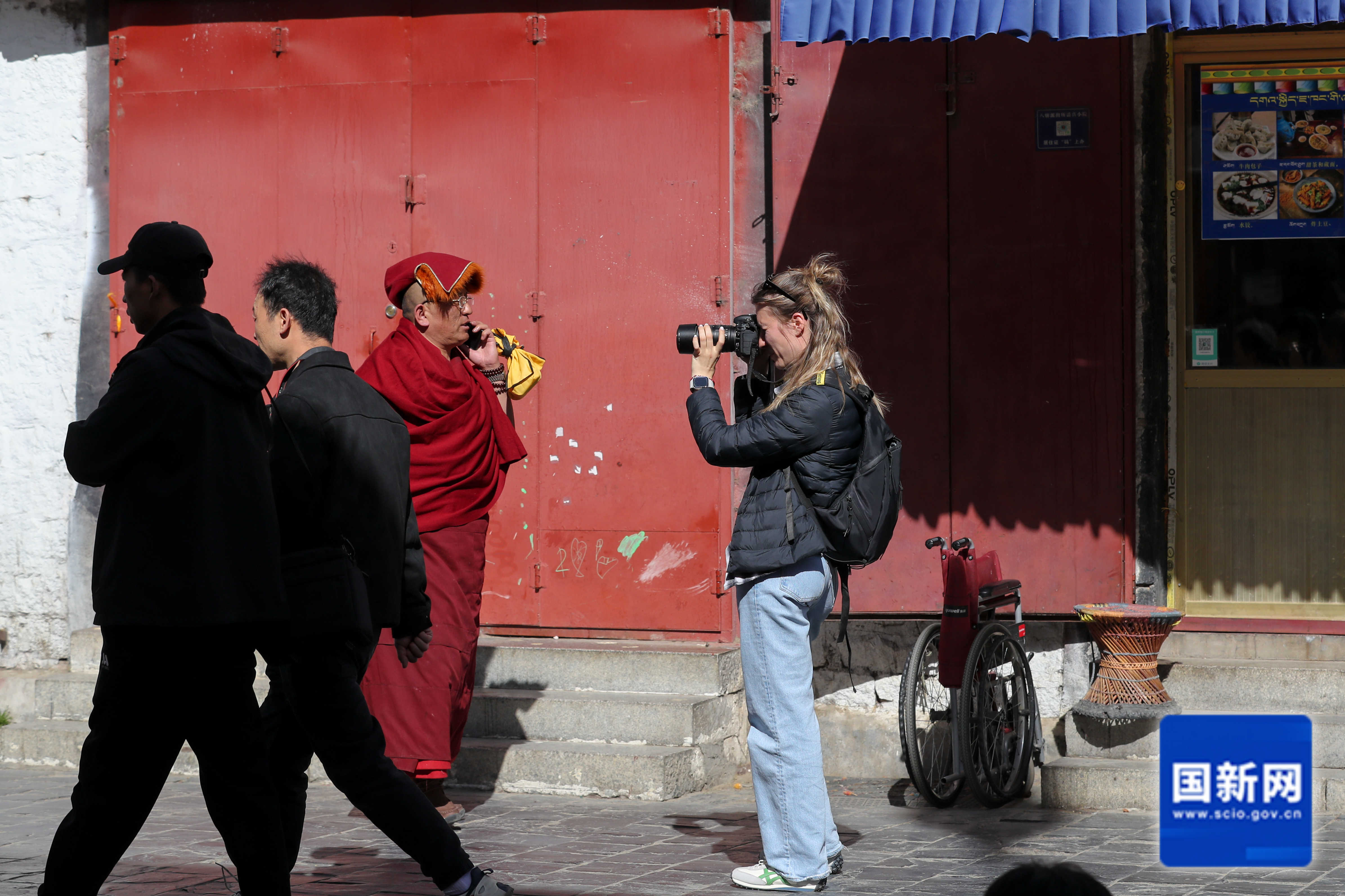 Journalists visit Barkhor Street in Xizang, March 29, 2025. [Photo by Xu Xiang/China SCIO]