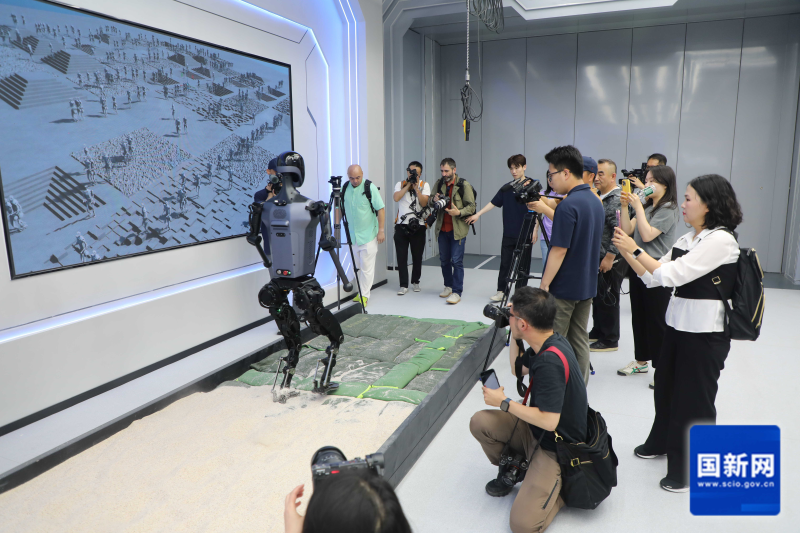 Journalists learn about humanoid robot research and development in Beijing, May 16, 2025. [Photo by Liu Jian/China SCIO]