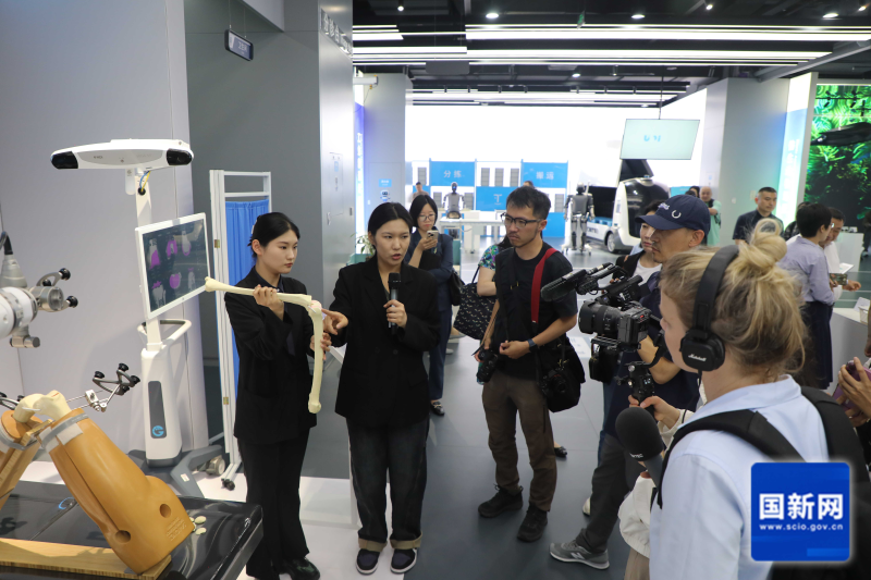 Journalists learn about the application of robots in medical and elderly care in Beijing, May 16, 2025. [Photo by Liu Jian/China SCIO]