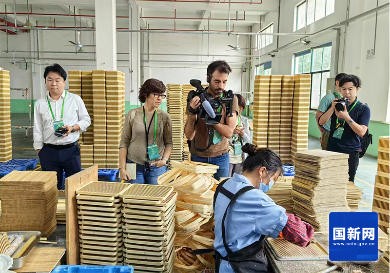 Journalists visit a bamboo and wood products company in Anji county, Huzhou city, Zhejiang province, June 13, 2025. [Photo by Luan Haijun/China SCIO]