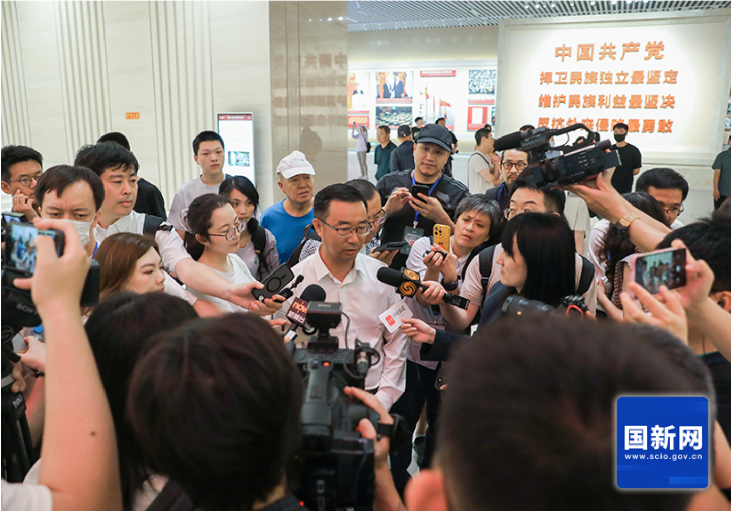 Luo Cunkang, curator of the Museum of the War of Chinese People's Resistance Against Japanese Aggression, is interviewed by reporters in Beijing, July 8, 2025. [Photo by Liu Jian/China SCIO]