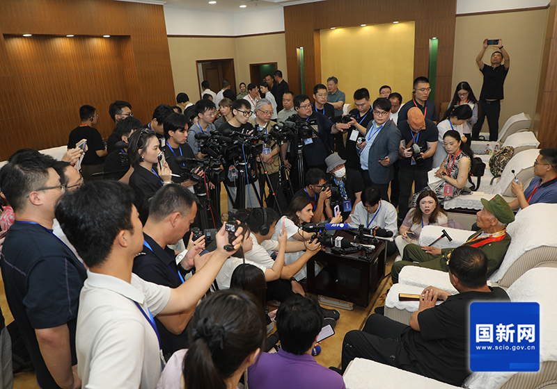 Reporters interview a war veteran in Changzhi, Shanxi province, July 24, 2025. [Photo by Liu Jian/China SCIO]