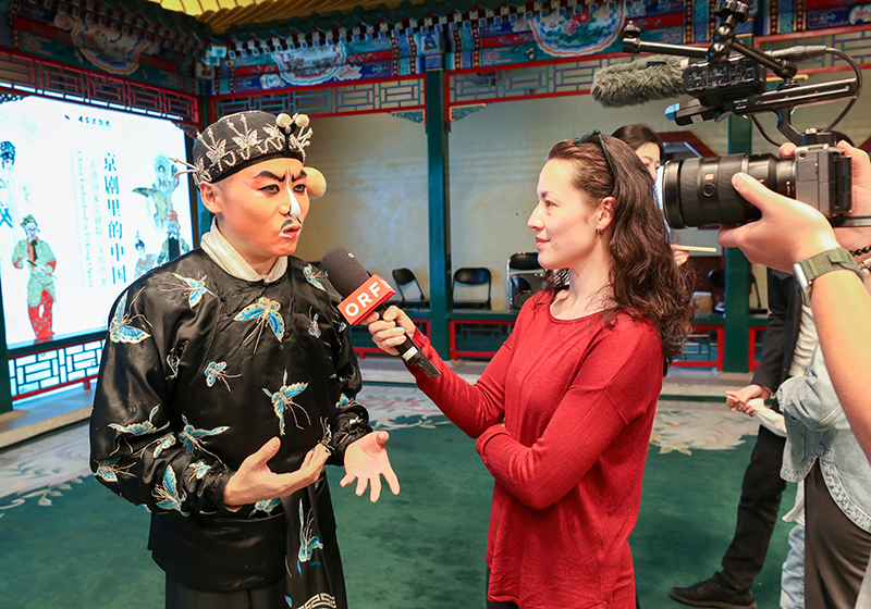 A journalist conducts an on-site interview with a Peking Opera performer in Beijing, March 27, 2026. [Photo/China SCIO]