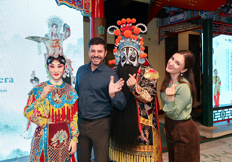 Journalists pose a photo with Peking Opera performers in Beijing, March 27, 2026. [Photo/China SCIO]