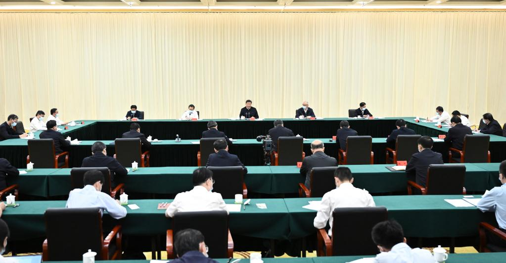 General Secretary of the Communist Party of China (CPC) Central Committee Xi Jinping, also Chinese president and chairman of the Central Military Commission, presides over a symposium on strengthening the comprehensive prevention and control of desertification and promoting the construction of crucial ecological projects, including the Three-North Shelterbelt Forest Program, and delivers an important speech in Bayannur, north China's Inner Mongolia Autonomous Region, June 6, 2023. (Xinhua/Yan Yan)