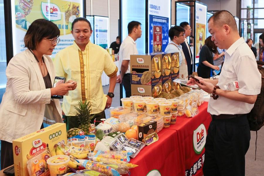 People visit a match-making event of the 6th China International Import Expo (CIIE) at the National Exhibition and Convention Center (Shanghai) in east China's Shanghai, July 26, 2023. The 6th CIIE is scheduled to be held in Shanghai from Nov. 5 to 10. (Xinhua/Xin Mengchen)