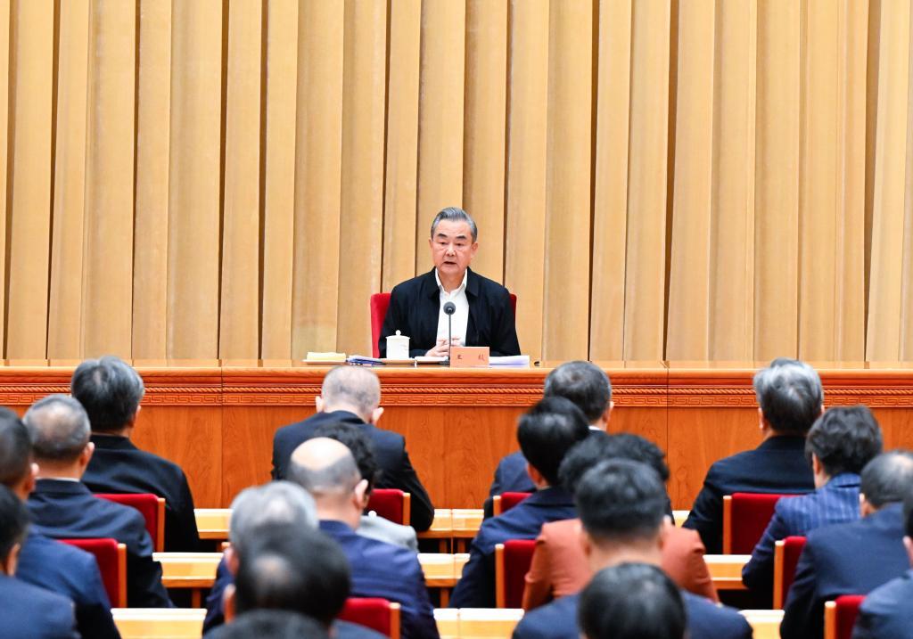 Chinese Foreign Minister Wang Yi, also a member of the Political Bureau of the Communist Party of China (CPC) Central Committee and director of the Office of the Foreign Affairs Commission of the CPC Central Committee, gives concluding remarks at the Central Conference on Work Relating to Foreign Affairs in Beijing, capital of China, Dec. 28, 2023. The conference was held in Beijing from Wednesday to Thursday. (Xinhua/Shen Hong)