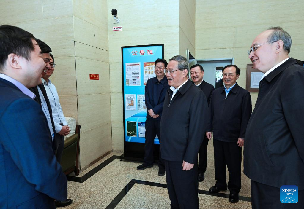 Chinese Premier Li Qiang, also a member of the Standing Committee of the Political Bureau of the Communist Party of China Central Committee, inspects a real estate project site and learns about local efforts to convert inventory housing into talent apartments in Beijing, capital of China, April 15, 2025. Li made an investigation and research tour in Beijing on Tuesday. (Xinhua/Rao Aimin)