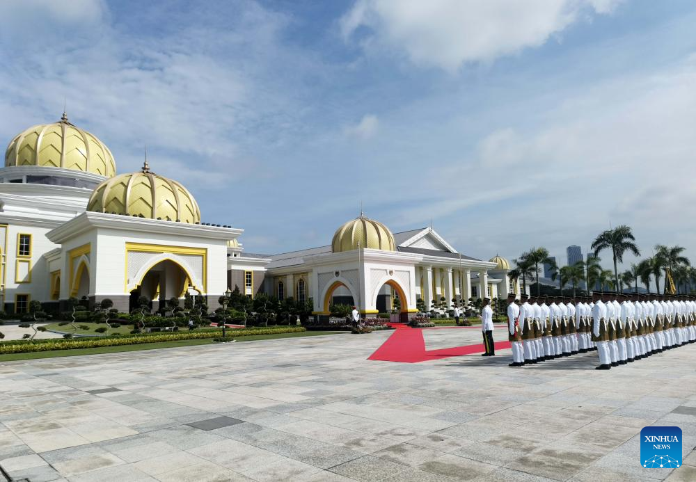 A welcome ceremony for Chinese President Xi Jinping is held by Malaysian King Sultan Ibrahim Sultan Iskandar in Kuala Lumpur, Malaysia, April 16, 2025. (Xinhua/Li Xueren)