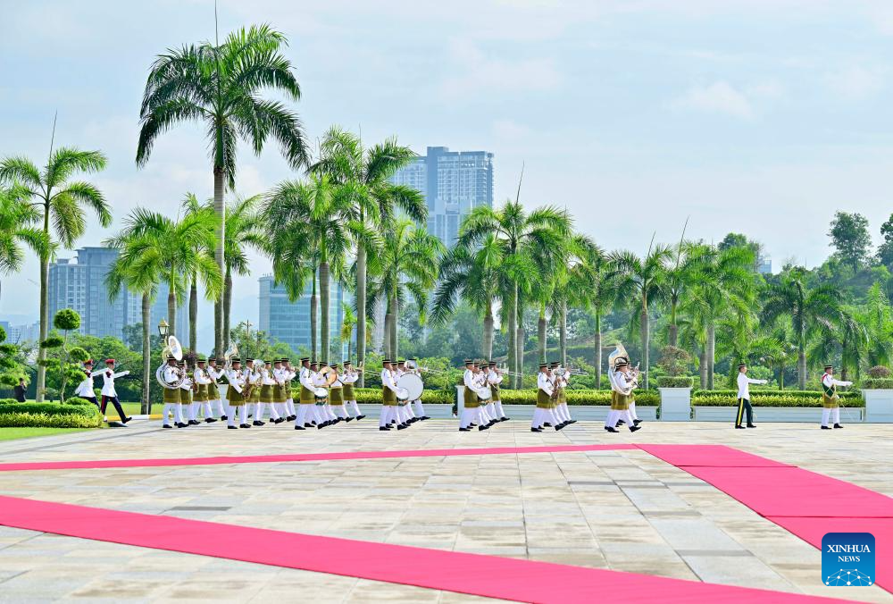 A welcome ceremony for Chinese President Xi Jinping is held by Malaysian King Sultan Ibrahim Sultan Iskandar in Kuala Lumpur, Malaysia, April 16, 2025. (Xinhua/Zhai Jianlan)