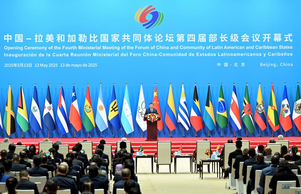 Chinese President Xi Jinping attends the opening ceremony of the fourth ministerial meeting of the China-CELAC (the Community of Latin American and Caribbean States) Forum and delivers a keynote speech at the China National Convention Center in Beijing, capital of China, May 13, 2025. (Xinhua/Yin Bogu)