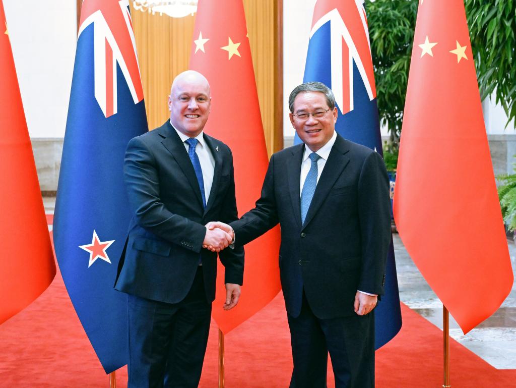 Chinese Premier Li Qiang held talks with New Zealand's Prime Minister Christopher Luxon in Beijing on Friday.