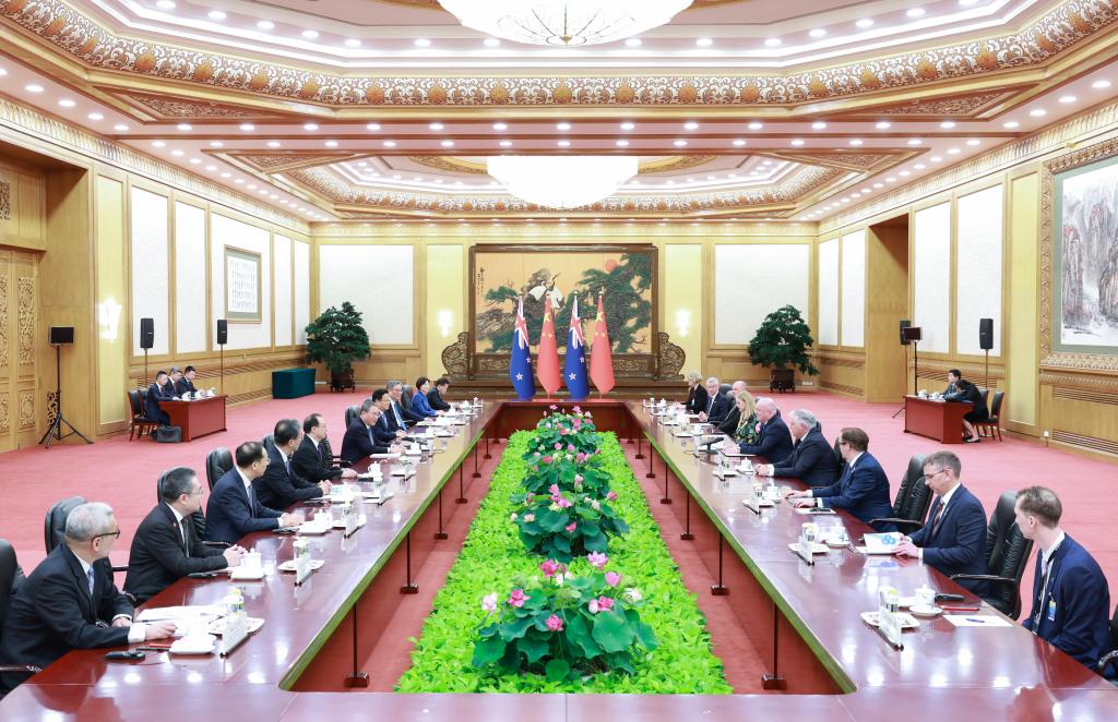 Chinese Premier Li Qiang holds talks with New Zealand's Prime Minister Christopher Luxon, who is on an official visit to China, at the Great Hall of the People in Beijing, capital of China, June 20, 2025 (Xinhua/Wang Ye)