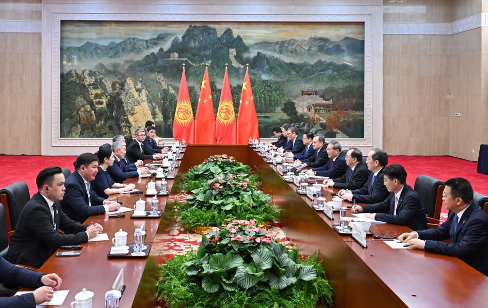 Chinese Premier Li Qiang meets with Prime Minister of Kyrgyzstan Adylbek Kasymaliev, who is in north China's Tianjin for the 2025 Summer Davos, in Tianjin, June 24, 2025. (Xinhua/Rao Aimin)