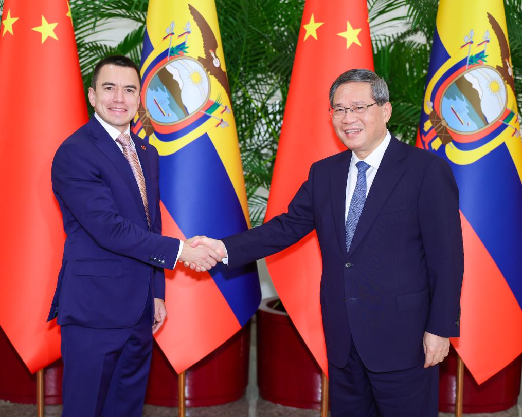 Chinese Premier Li Qiang met with Ecuadorian President Daniel Noboa, who is in China to attend the 2025 Summer Davos forum, in Beijing on Tuesday.