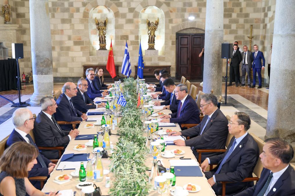 During his meeting on the island of Rhodes with Greek Deputy Prime Minister Kostis Hatzidakis, Li also said China is willing to work with Greece to leverage complementary advantages, advance the implementation of the plan for the Port of Piraeus in a high-quality manner, and promote more optimized and balanced development of the bilateral trade.