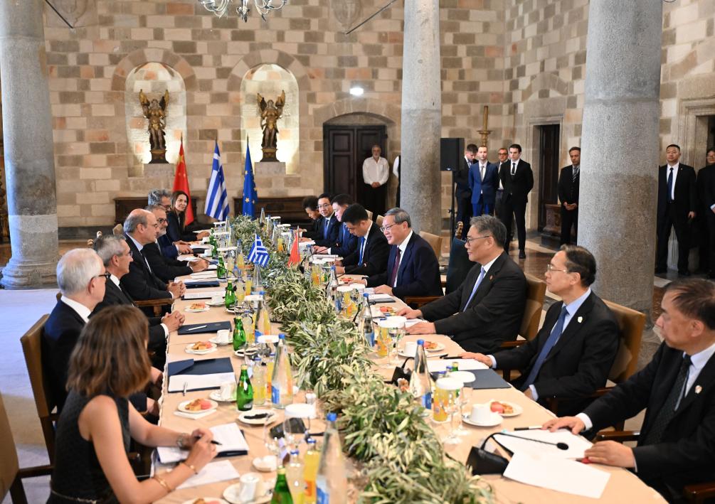 Chinese Premier Li Qiang meets with Greek Deputy Prime Minister Kostis Hatzidakis on the island of Rhodes, Greece, July 4, 2025. (Xinhua/Li Xiang)
