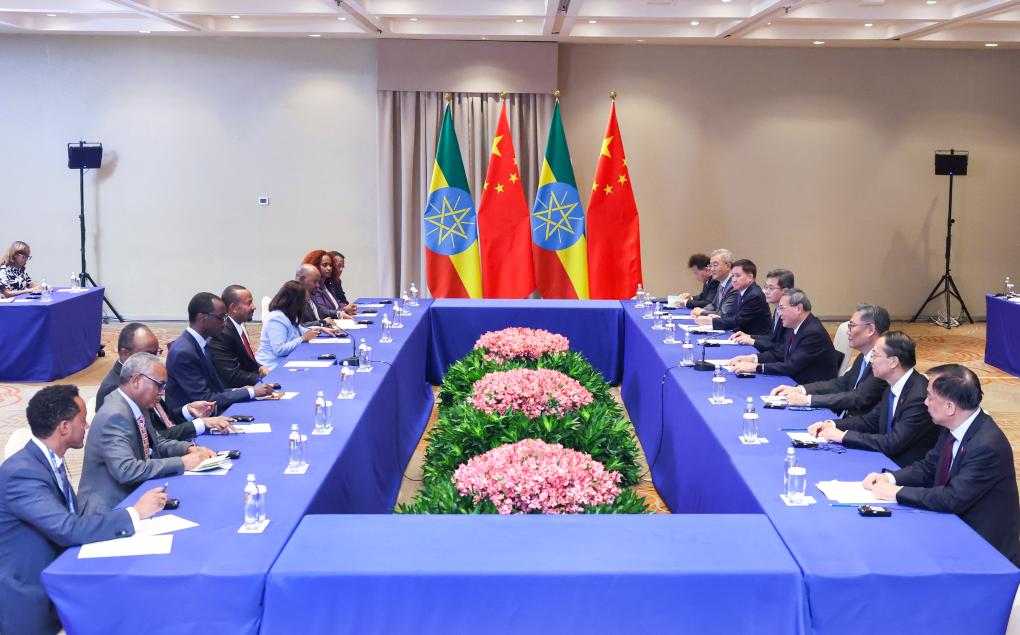 Chinese Premier Li Qiang meets with Ethiopian Prime Minister Abiy Ahmed on the sidelines of the 17th BRICS Summit in Rio de Janeiro, Brazil, July 6, 2025. (Xinhua/Yao Dawei)